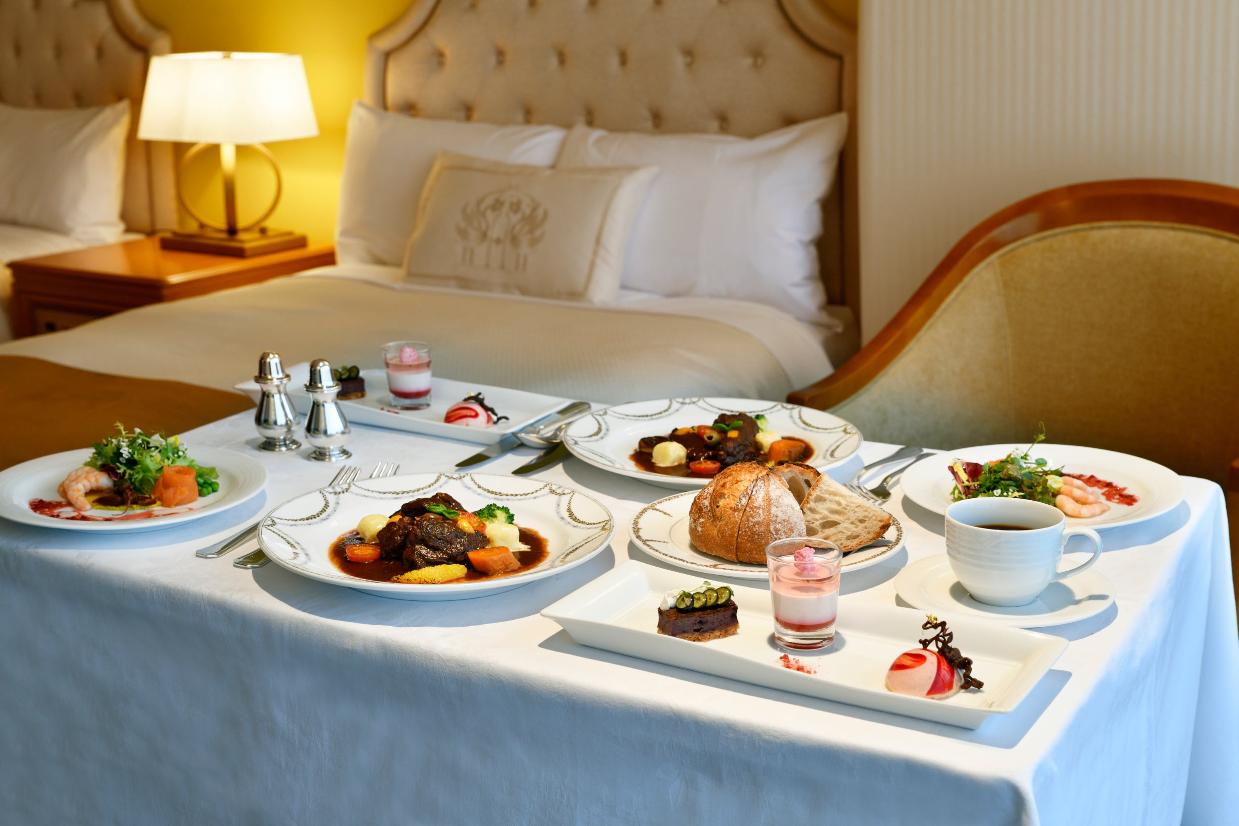 5月6日(水・祝)までの期間、シェフおすすめのディナーをルームサービスでお召し上がりいただける宿泊プラン「スプリングディナーステイ」を販売します。