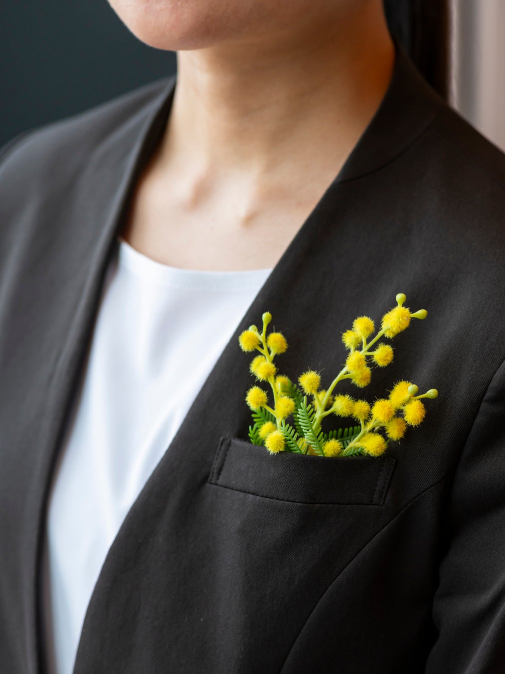 ■国際女性デーを彩るミモザコサージュの着用と生花装飾