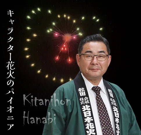 大曲の花火で培われた伝統の技と、最新のアイデアを融合させた花火づくりが特徴。四代目代表取締役の今野義和氏は、火薬の精緻な配合と配列でキャラクターなどを夜空に描く「型物花火の天才」として知られています。