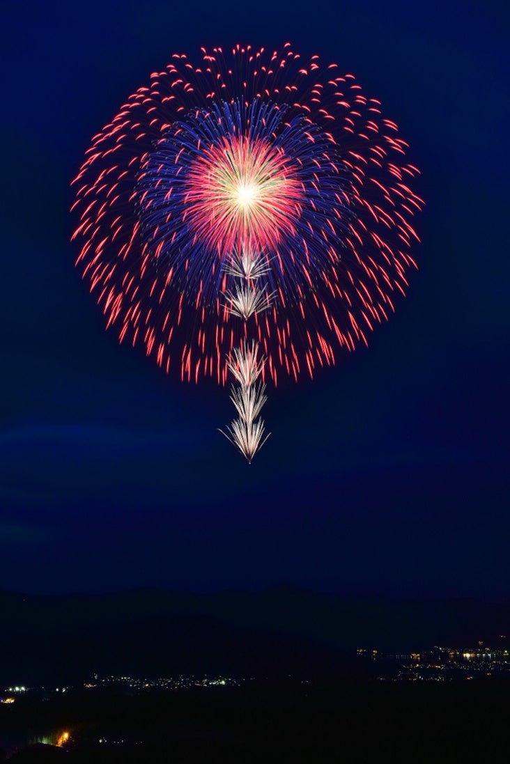 静寂を切り裂き、開花する瞬間。息を呑むほどに美しい“尺玉”は、忘れられない絶景となります。