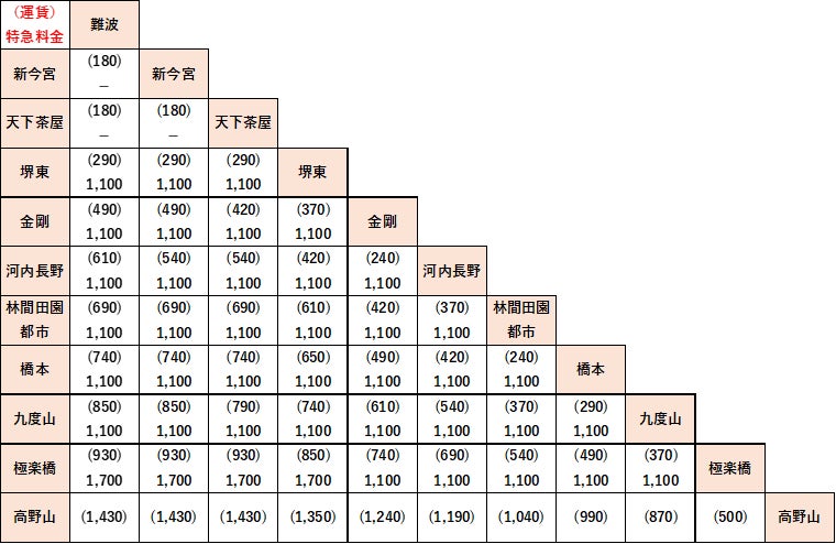 ※難波・新今宮および天下茶屋の各駅相互間の特急券は発売しておりません。