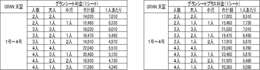 ※グランシート、グランシートプラスは1シート4人掛けです。1シート2名からご利用いただけます。