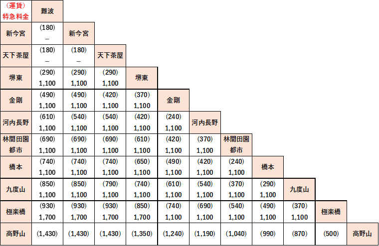 ※難波・新今宮および天下茶屋の各駅相互間の特急券は発売しておりません。