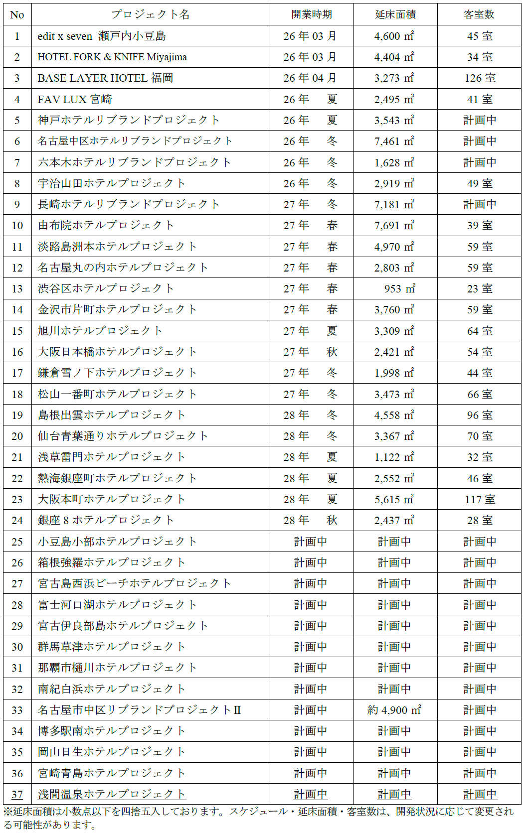■ホテル開発予定案件一覧