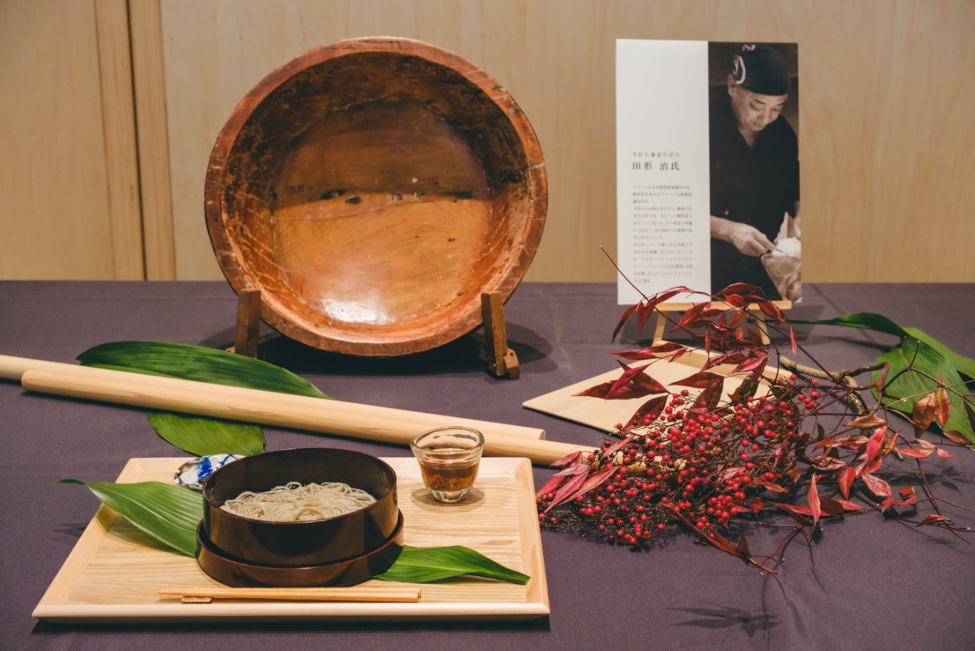 授賞式の会場で、大賞を受賞した「手打ち蕎麦 たがた」田形 治氏の料理「山も海も、そばに」が紹介されました。試食として、焼畑農法で栽培された在来種の蕎麦と酒蔵で自噴する湧き水を使って打った十割蕎麦が登場。蕎麦打ちに使ったのと同じ湧き水とともに「水蕎麦」で提供され、蕎麦そのものの力強い味わいがプレゼンテーションされました。