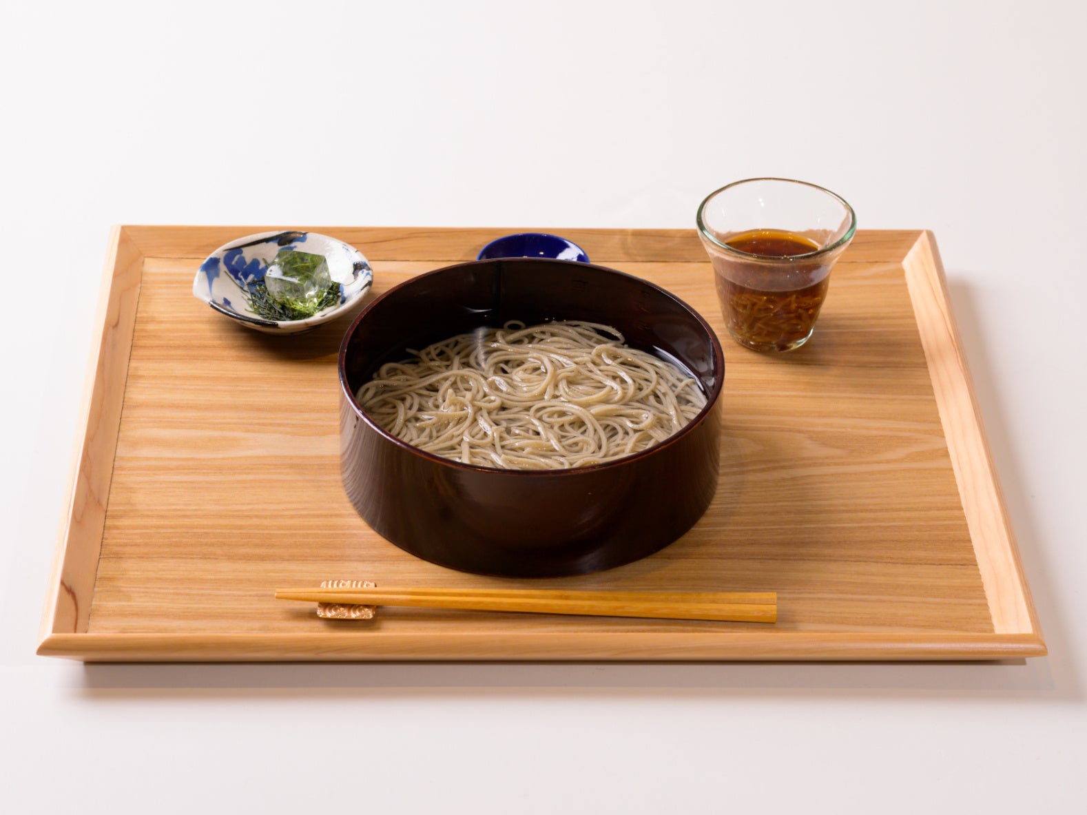 井川の焼畑・静岡在来蕎麦を、地下60メートルから自噴する安倍川の伏流水で水蕎麦としてご用意。 清水のかぶせ茶からは低温抽出した旨味を、用宗の生しらすからは鮮烈な出汁を。 南アルプスから駿河湾へ―高低差およそ6000メートルを誇る雄大な静岡の、山と川と海の恵みを堪能できます。