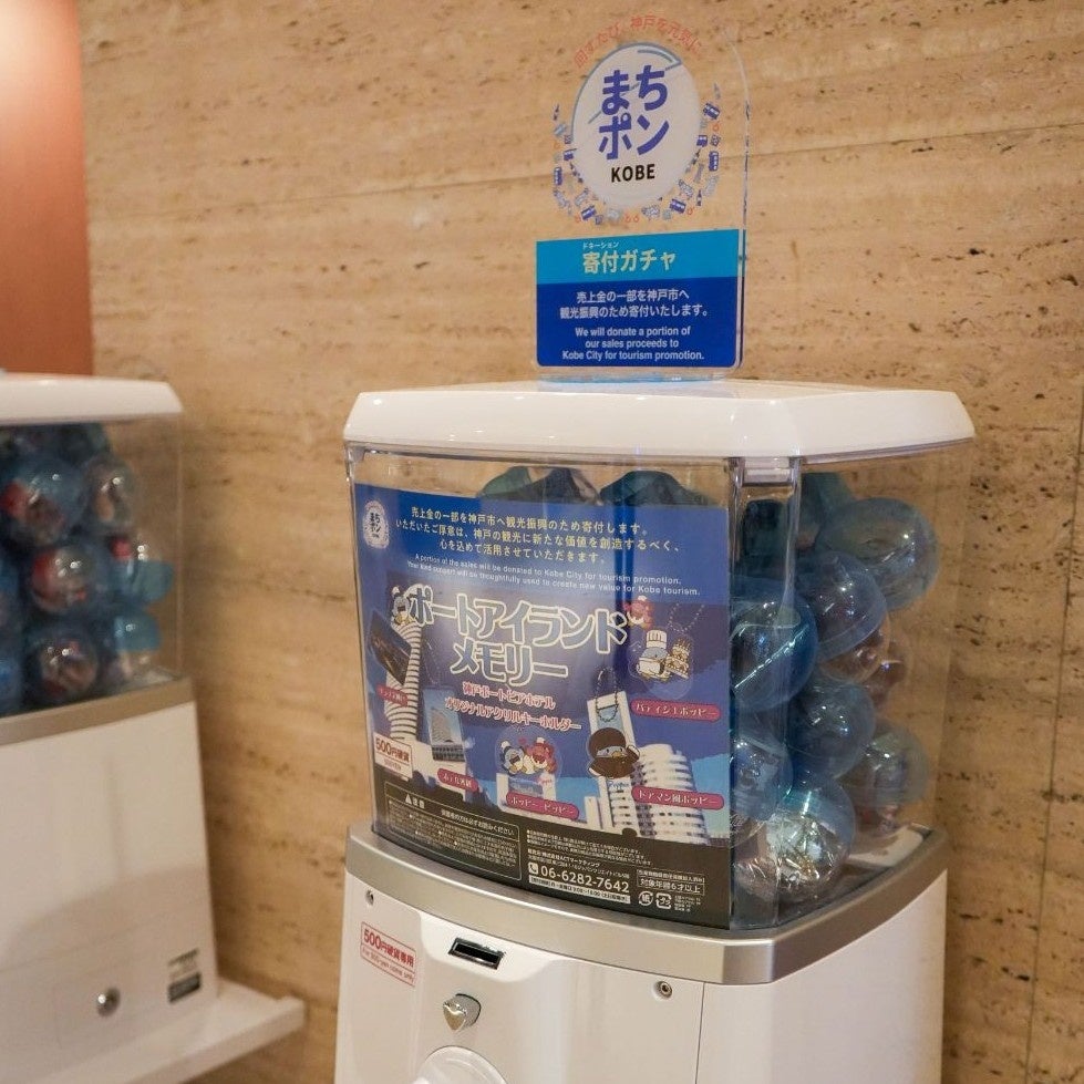 館内に、神戸観光の振興を役立てる寄付ができるガチャを設置しております。開業45周年を記念したオリジナルのキーホルダー5種も登場します。