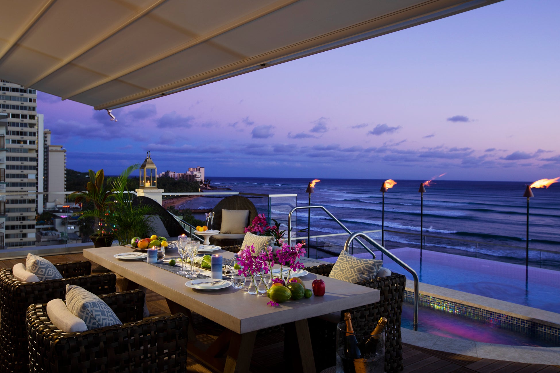 賑やかなワイキキのメインストリート「カラカウア通り」の中心に位置し、世界有数のバケーションスポット「ワイキキビーチ」を全客室より手に取るように近く見渡すことができる、何ものにも代えがたい贅沢なロケーション。イタリアから取り寄せた大理石や、北アフリカはモロッコの職人が手作業で施した透かし細工を有するモロッカンランプ、キッチンのブランド調理機器などの超一流の品を携えた室内に、洗練された感性を感じる外観、そこは宿泊者、または館内にご予約のあるゲストのみが足を踏み入れることのできる、極上のプライベート空間となっています。