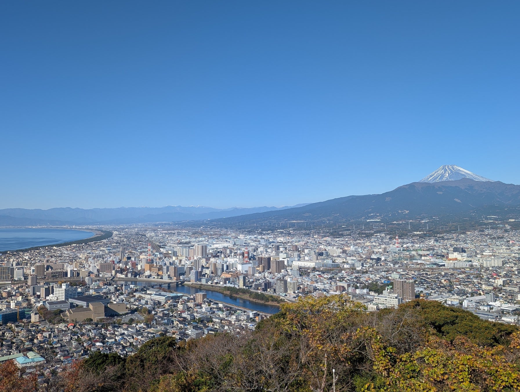 この時期ならではの絶景 潮風を感じながら、冠雪した富士山と穏やかな駿河湾のコントラストを楽しむ、早春のベストシーズンです。