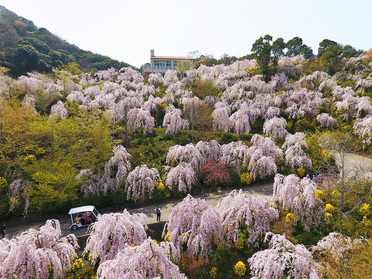 約400本のしだれ桜が咲き誇る「花見山」