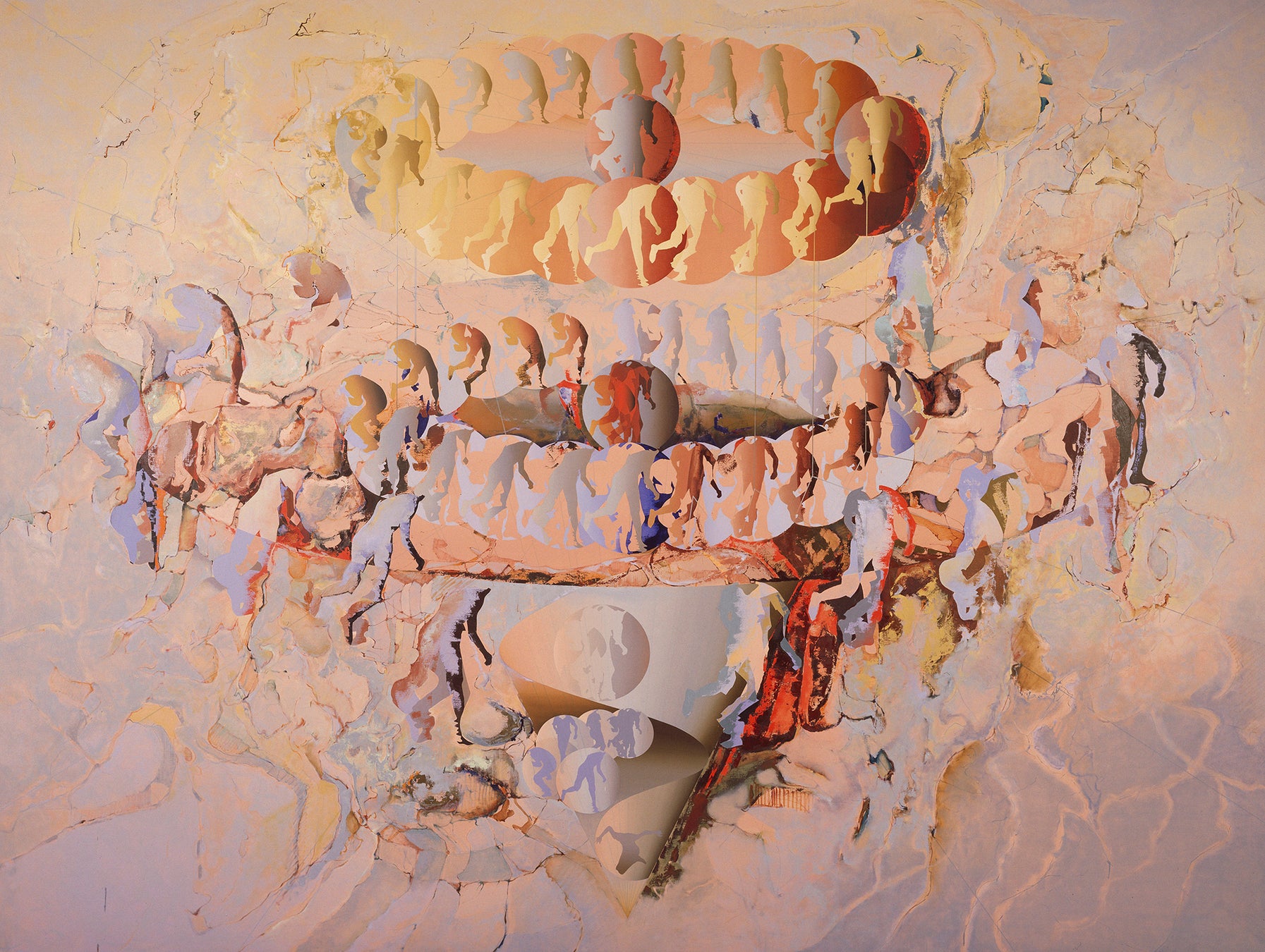「解体」の先にあるのは、変容のプロセスです。ここでは、芸術がもつ可塑性——すなわち、環境や関係性のなかで形を変える柔軟な力に注目します。作品は固定された意味を持つのではなく、状況や受け手との関係によって常に変化し、生成されていきます。ドナルド・ジャッドの構造体は、空間との関係性の中で意味を生み出し、ラウシェンバーグは絵画とオブジェの境界を揺るがしながら、物質の変容を促します。森村泰昌や柳幸典も、アイデンティティや歴史、国家といった象徴的な枠組みを問い直し、変容のプロセスそのものを作品化しています。変容とは、解体の先にある創造的な応答であり、芸術が持つもう一つの根源的な力なのです。