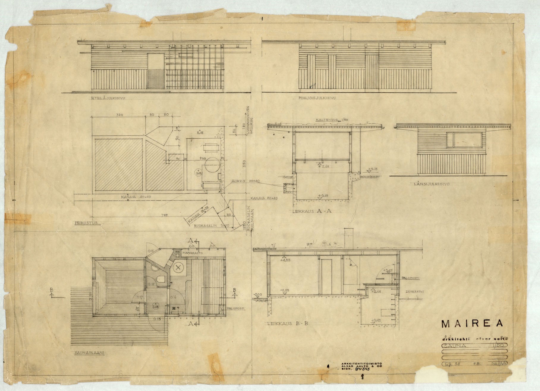 アルヴァ・アアルトが、彼の事務所で手掛けたサウナは、独立したサウナが29棟(うち23棟が実現)、住宅内のサウナが48室(うち38室が実現)にのぼります。この章では、アルヴァ・アアルトの建築に設けられたサウナを紹介します。