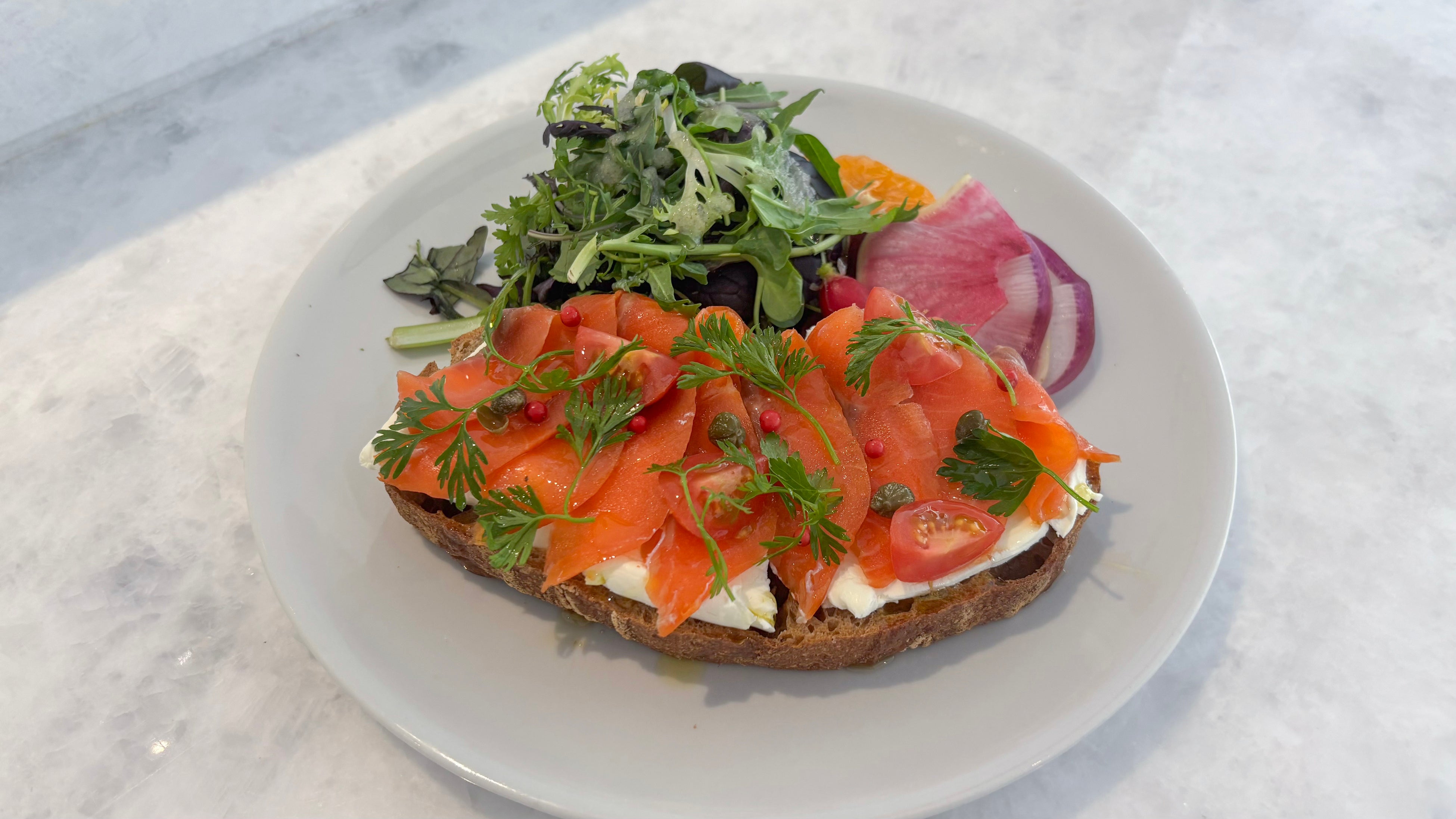 スモークサーモンのオープンサンド