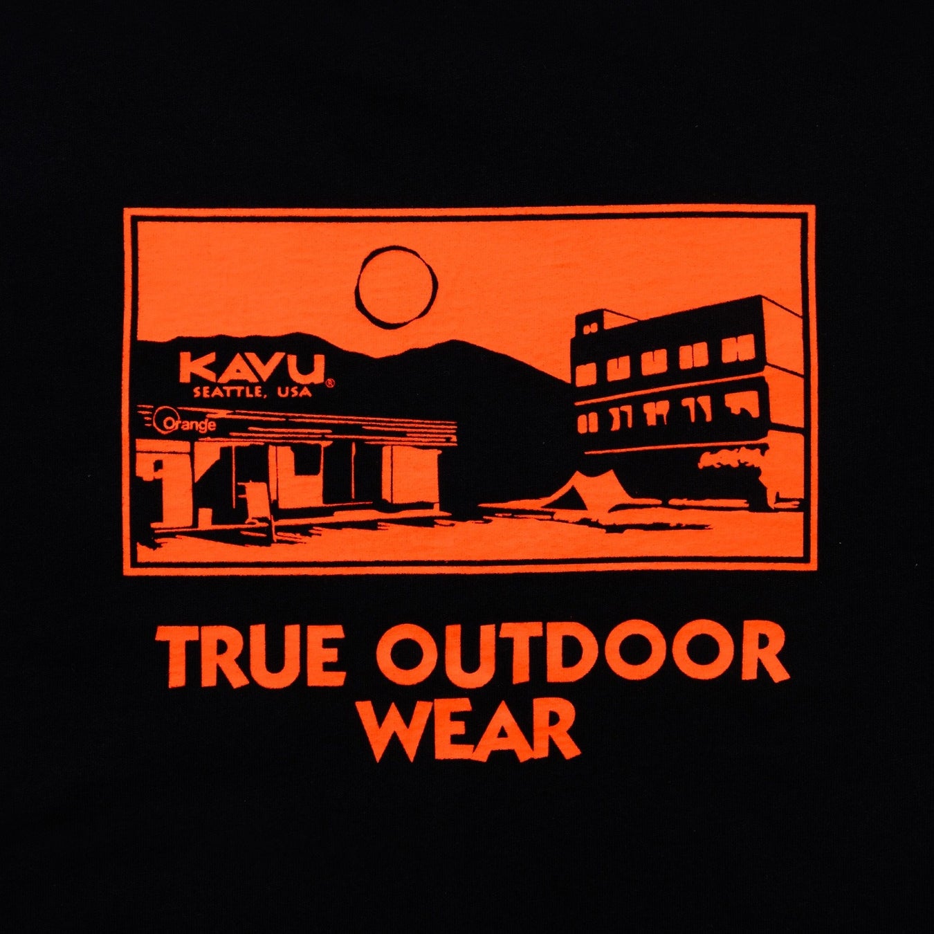 本アイテムは、KAVUの定番アイテムである「トゥルーロゴ TEE」をベースに、「アウトドアの聖地」とも称されるOrange発祥の地・和歌山県にある「かつらぎ店」の風景をバックプリントで表現。OrangeとKAVUの想いが重なり合う、特別な一着に仕上がっています。