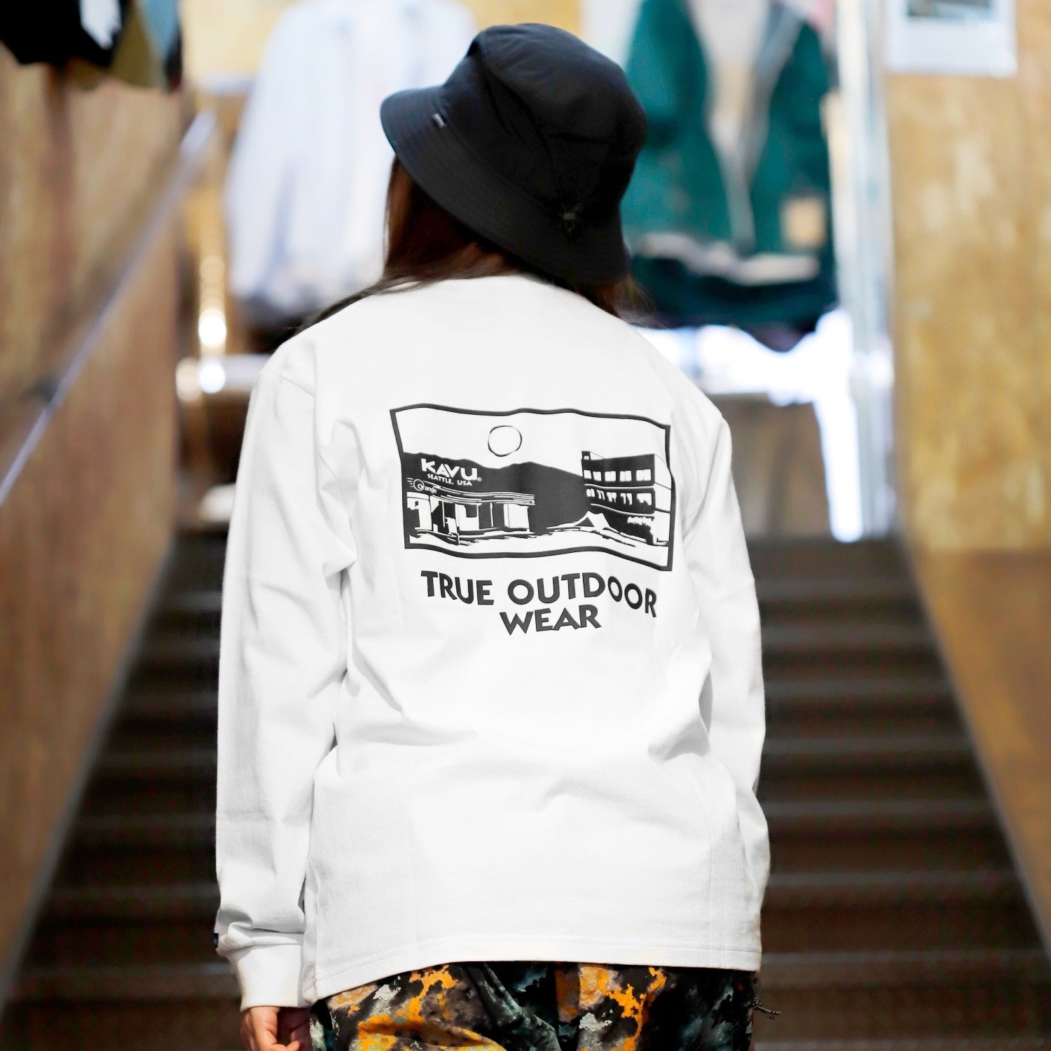 本アイテムは、KAVUの定番アイテムである「トゥルーロゴ TEE」をベースに、「アウトドアの聖地」とも称されるOrange発祥の地・和歌山県にある「かつらぎ店」の風景をバックプリントで表現。OrangeとKAVUの想いが重なり合う、特別な一着に仕上がっています。