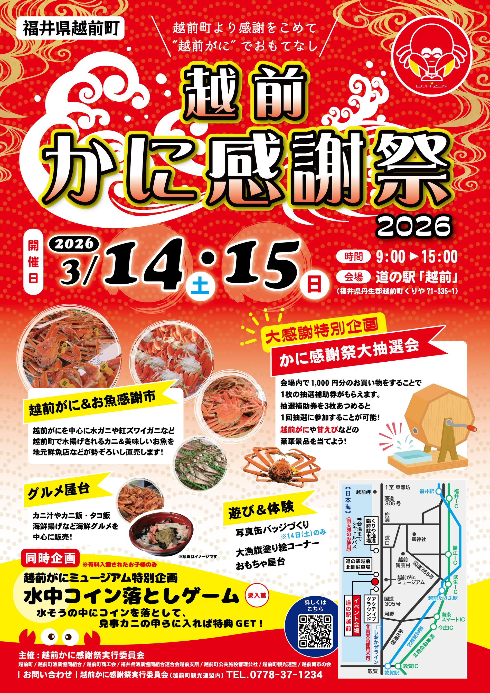 越前かに感謝祭実行委員会(越前町観光連盟内) TEL/0778-37-1234