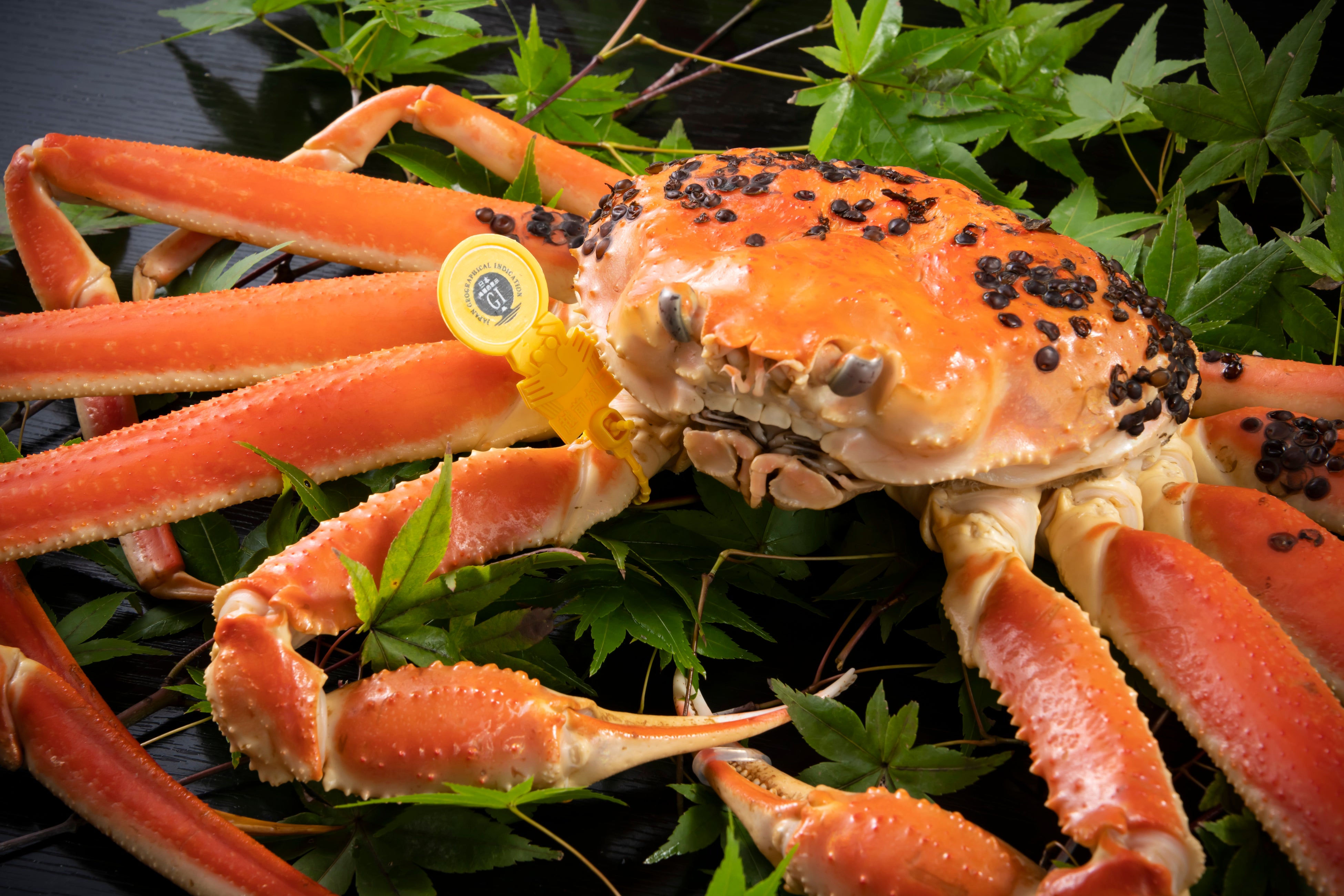 日本海の荒波と厳しい寒さに育てられた「越前がに」はズワイガニの中の王様としられ、甘くひきしまった肉質で知られる最高級品種で、ブランドマークの入った黄色いタグ付きのカニは「越前がに」の証です。