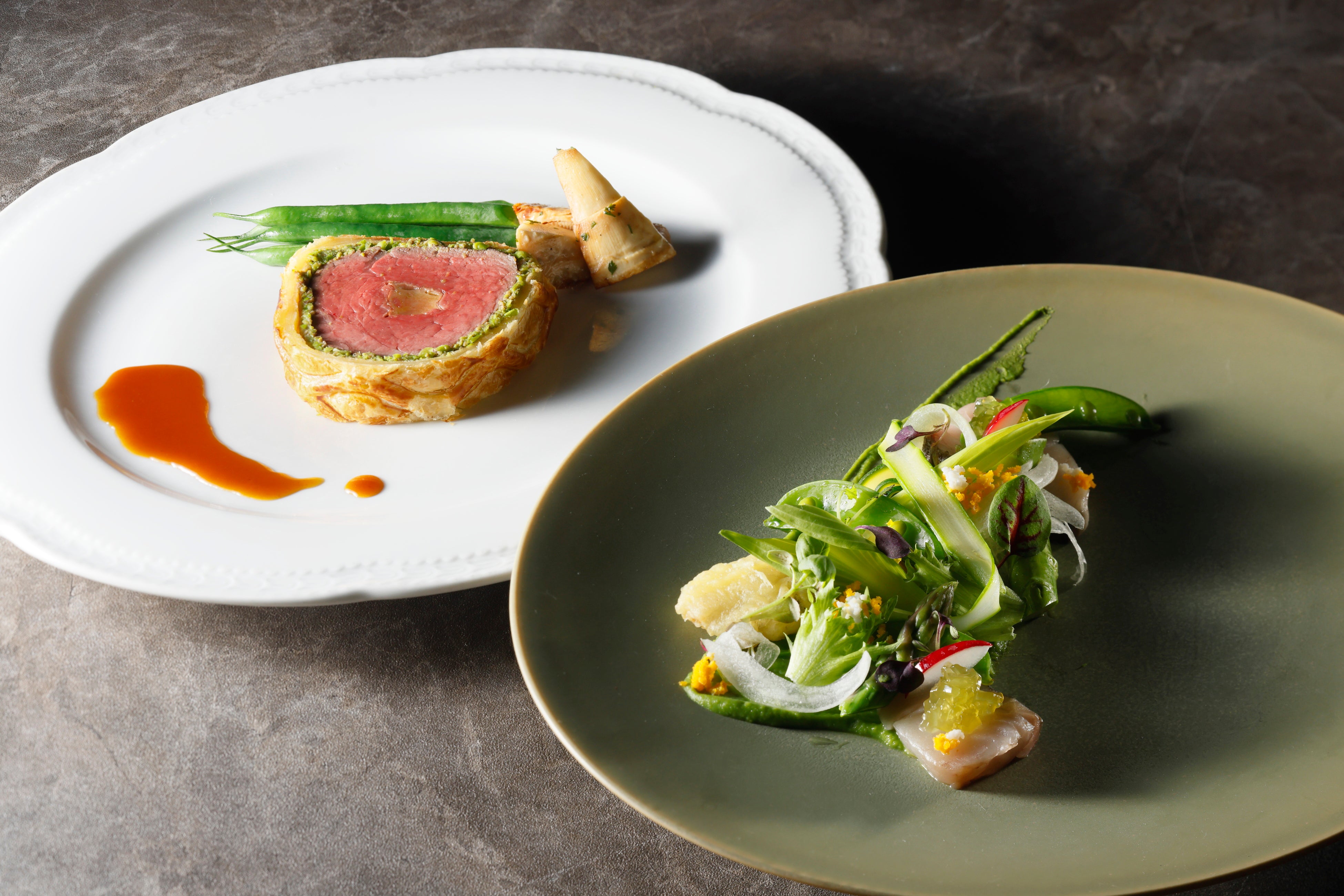 第1回目は、副総料理長 村上 文啓が担当。旬の鰆と春野菜を使った爽やかなオードブルや、旨みを凝縮した魚介の春キャベツ包みなどをご用意。メインは、黒毛和牛フィレ肉とフォアグラのパイ包み焼きに、味わいにより深みを持たせるモリーユ茸のソースを添えて提供します。春から新緑の季節に移ろいゆく情景をイメージしたメニュー構成に、オークラ伝統のソースを用いるなどクラシカルな要素を盛り込んだコース料理をご用意。全3回を通して、フランス料理の魅力を余すところなくお届けする本イベントにご期待ください。