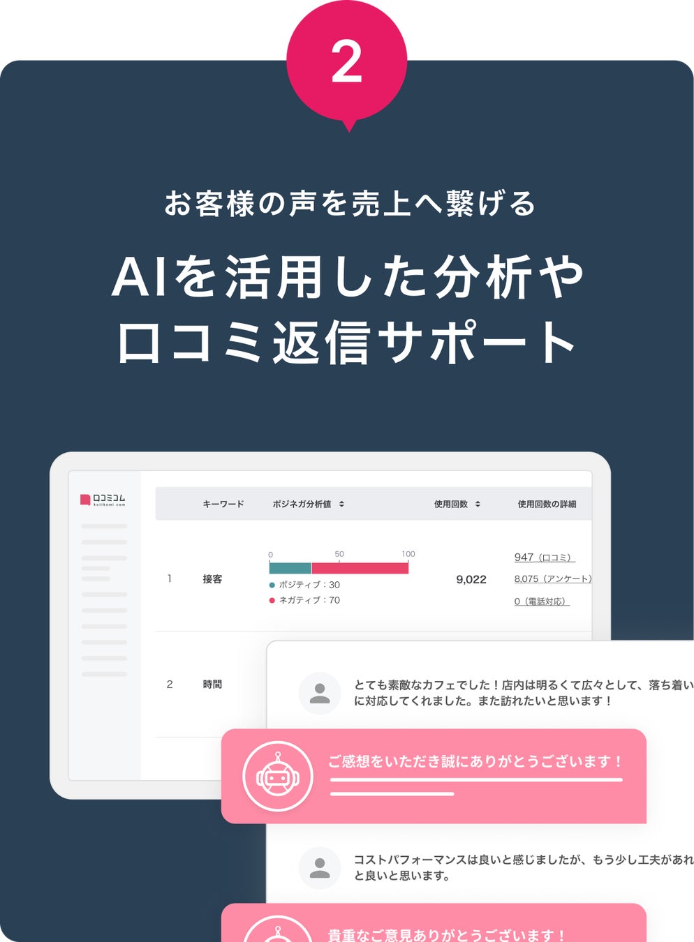 口コミを一元管理!AIが分析・返信をサポート