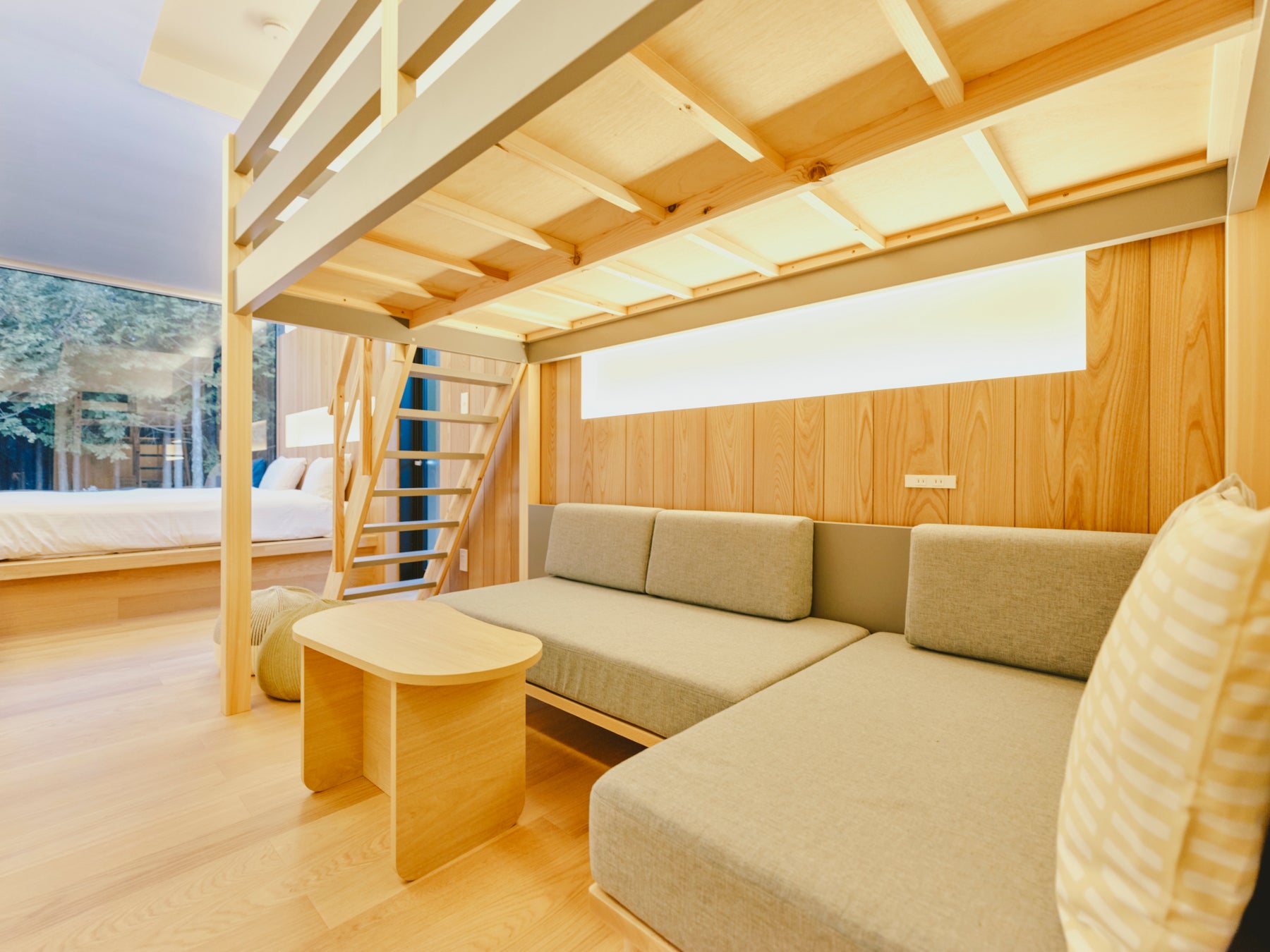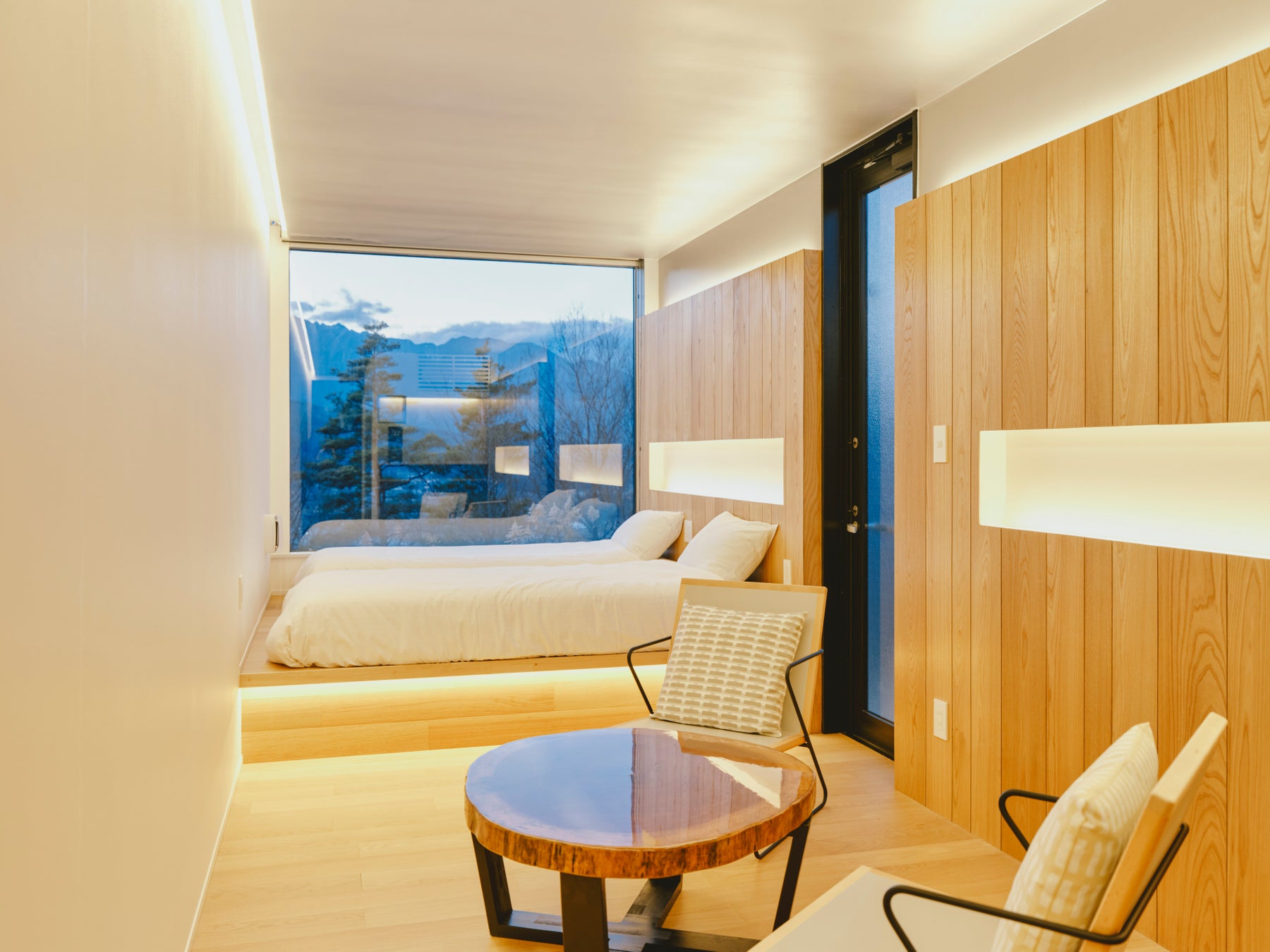 大きな窓から森と山々を望み、夜には月明かりがやさしく部屋を照らします。