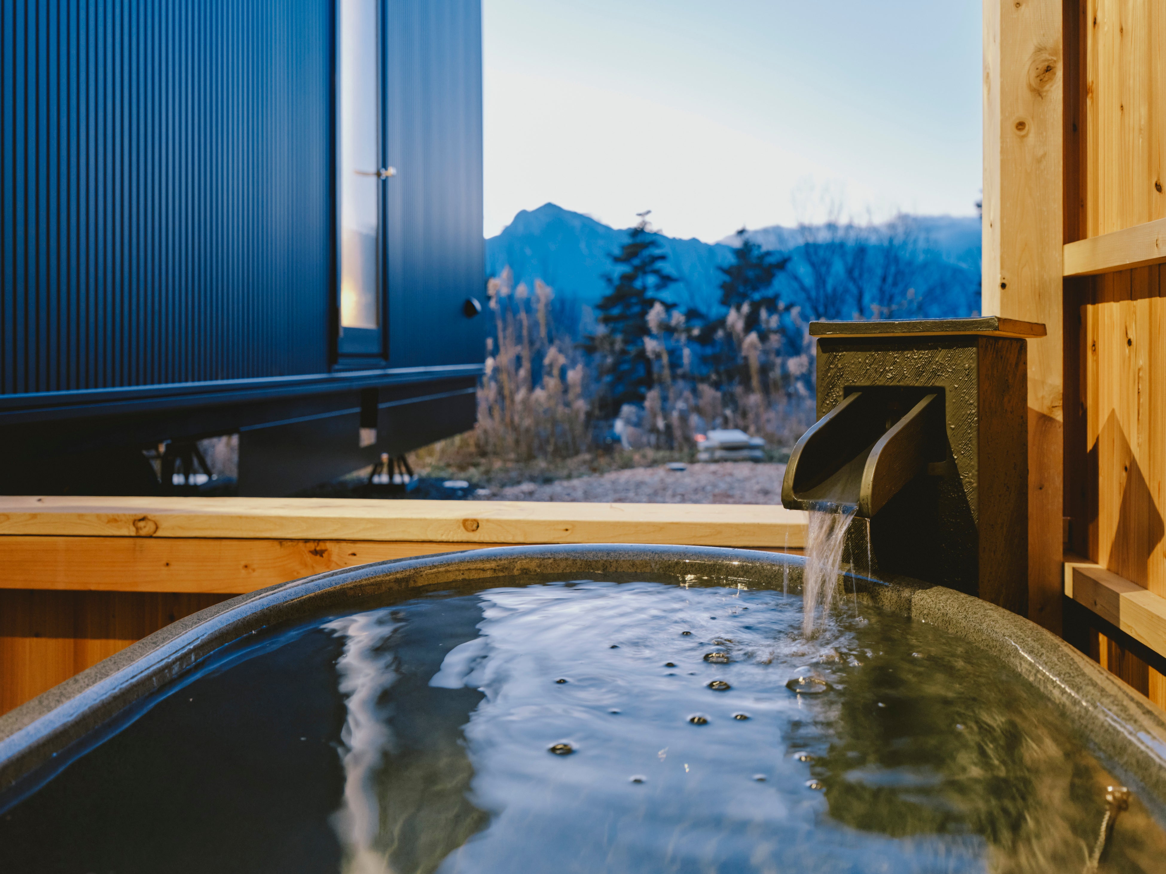 敷地内に湧き出る源泉を活かし、滞在の中で心身をゆっくりと癒やす温泉体験を提供。
