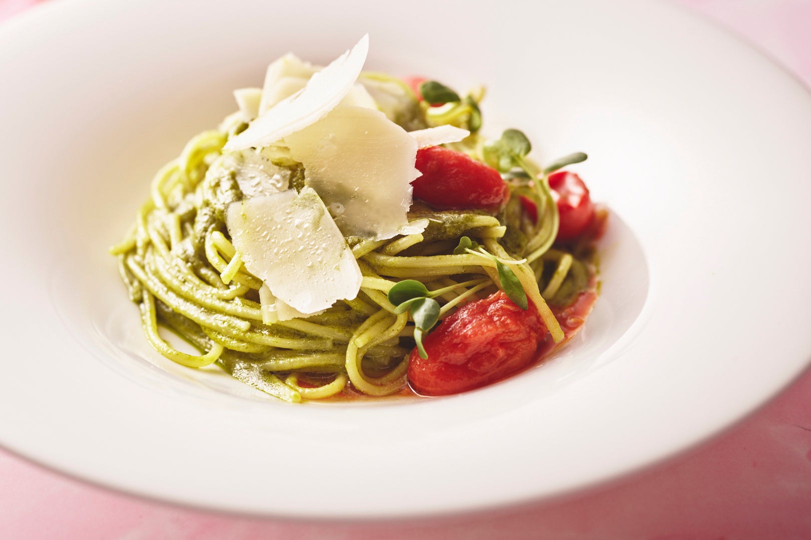 ・スパゲッティーニ バジルペースト チェリートマト パルメザン