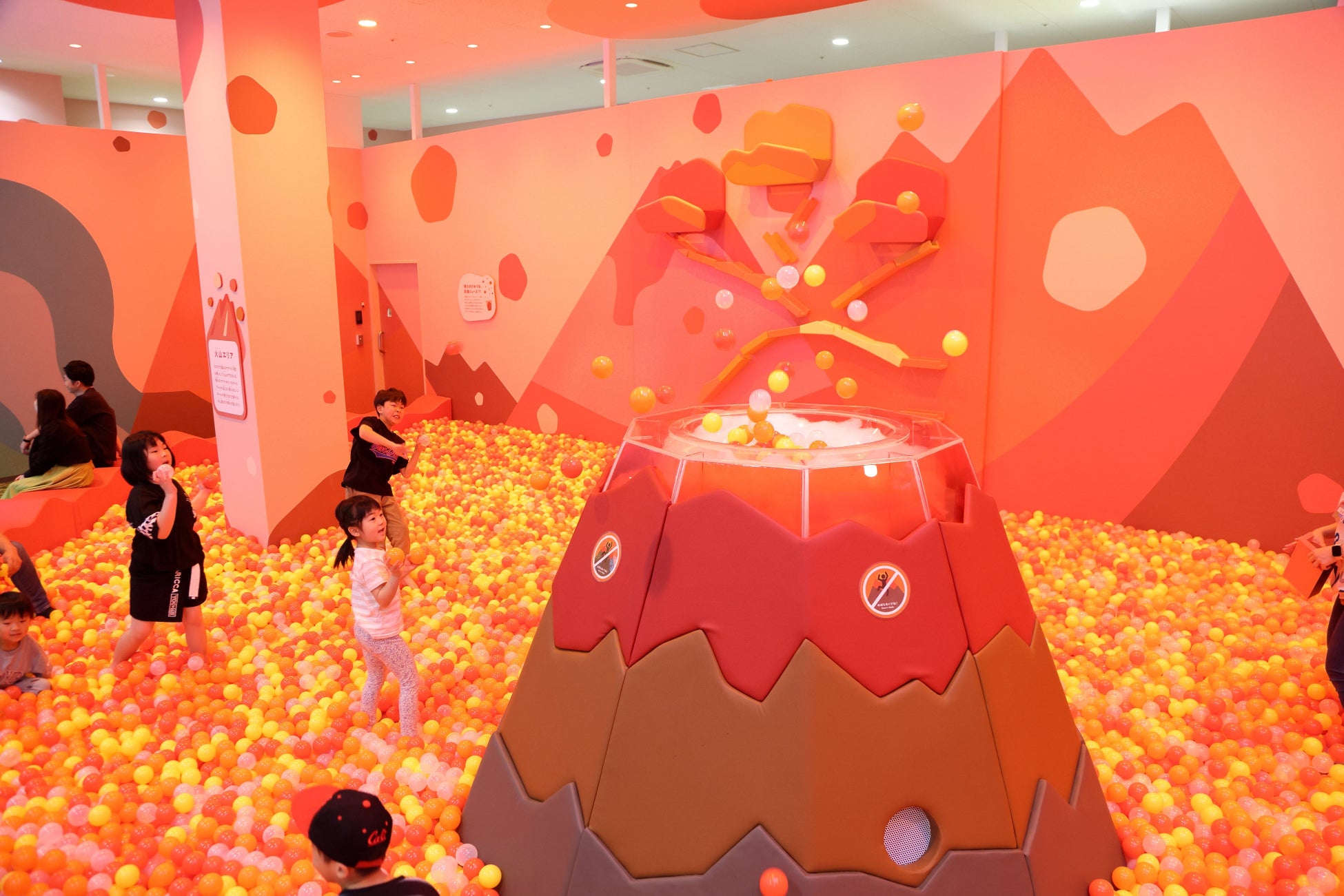 マグマが噴火する火山をイメージしたエリア。ボールが飛び出す火山があるボールプールで、エネルギーを発散できます。ぐるりと1周約21mの空中散歩が楽しめるスカイレールグライダーが初登場。