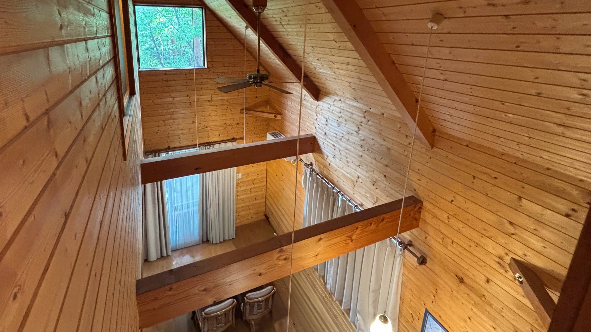 まるで森林の中にいるような木の香りを漂わせるログハウスは、いかにも別荘らしい存在感。