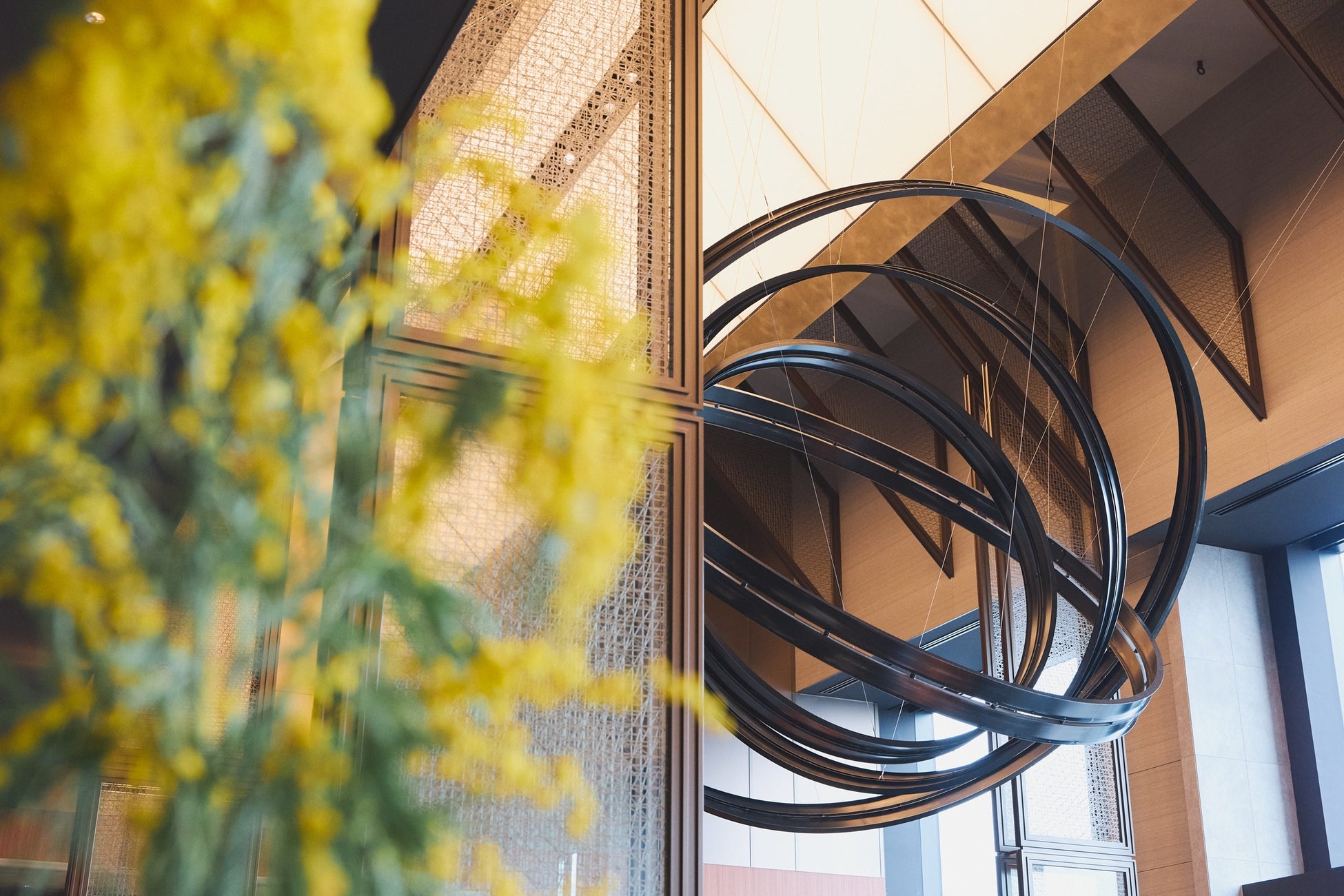 ホテルの館内各所で、ミモザをテーマにした装飾と光の演出がお出迎え