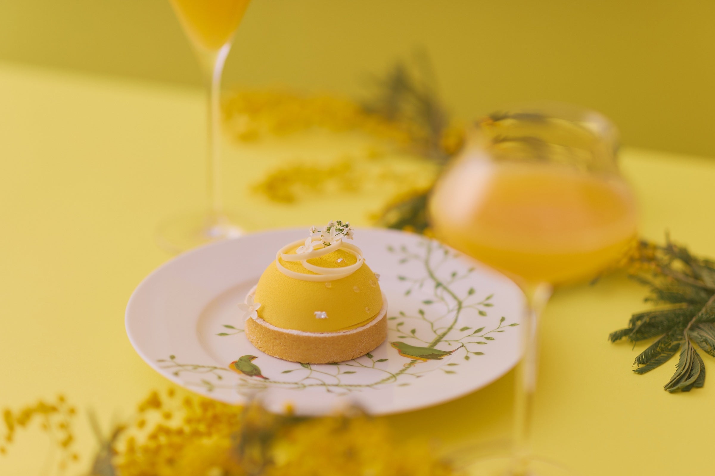 3月8日「国際女性デー」は、1975年に国連で制定された世界的な記念日。女性の活躍を称え、ジェンダー平等について考える日として、世界中でイベントが開かれます。イタリアでは「ミモザの日」とも呼ばれ、身近な女性に感謝を込めて、幸せの象徴であるミモザの花を贈る習慣があります。「大阪ステーションホテル」では、館内各所にミモザをイメージした華やかな装飾と黄色の照明を施し、女性への感謝と敬意を表します。さらに、愛らしい春色のケーキと陽光にきらめくカクテルを、THE LOBBY LOUNGEにて期間限定でご用意。いきいきと自分らしく輝く女性たちへ、至福の時間をお届けします。