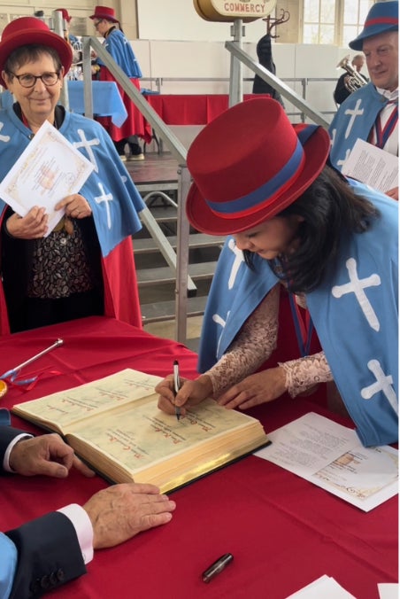 その後、コメルシーの城への想い、そしてマドレーヌの歴史を未来へつなぎたいという熱意を、市長へ手紙に綴りました。幾度も現地を訪れ真摯に想いを伝え続けた結果その情熱が評価され、2018年5月1日、フランスより来日していただき、コメルシー市公認「マドレーヌ大使」に任命されました。