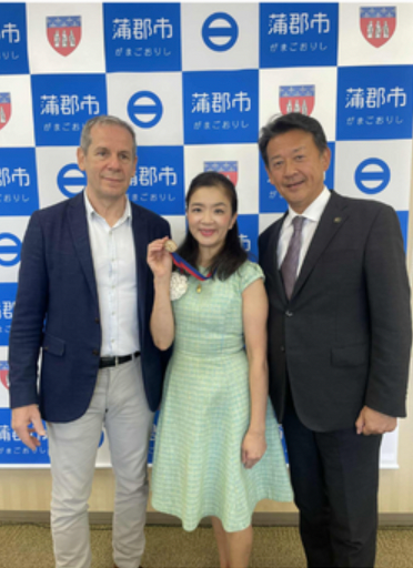 壁谷玲子氏は、2018年5月1日にコメルシー市公認のマドレーヌ大使に就任。その後、行き来してコメルシー市と信頼関係を築き、コメルシー市長も2023年10月蒲郡に来日。