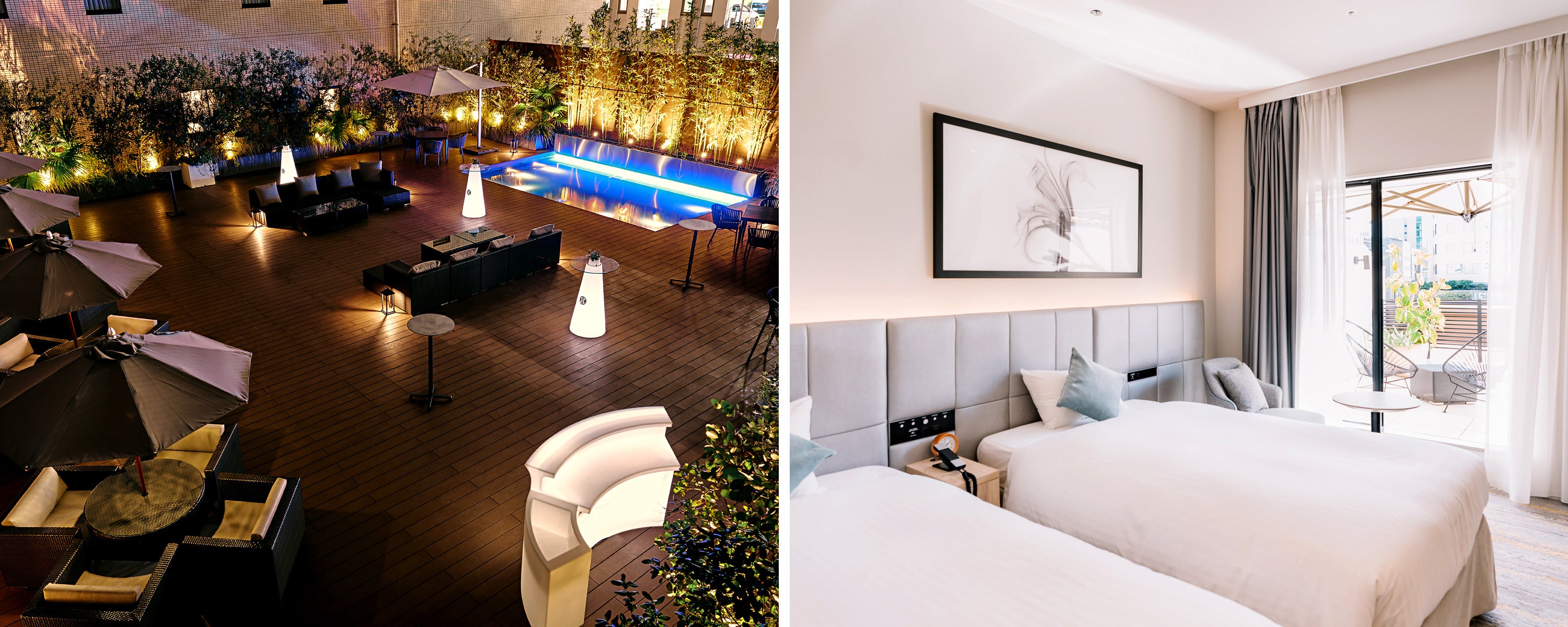 JR博多駅筑紫口から徒歩1分、福岡空港から地下鉄で5分、さらに地下鉄博多駅に直結。ナチュラルな素材感がアクセントとなる客室や宿泊ゲスト専用のエグゼクティブガーデンやジムなどを完備し、都会にいることをしばし忘れさせ、旅の活力を生み出します。