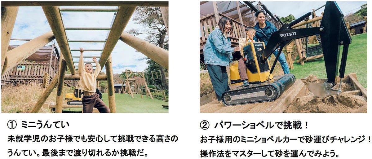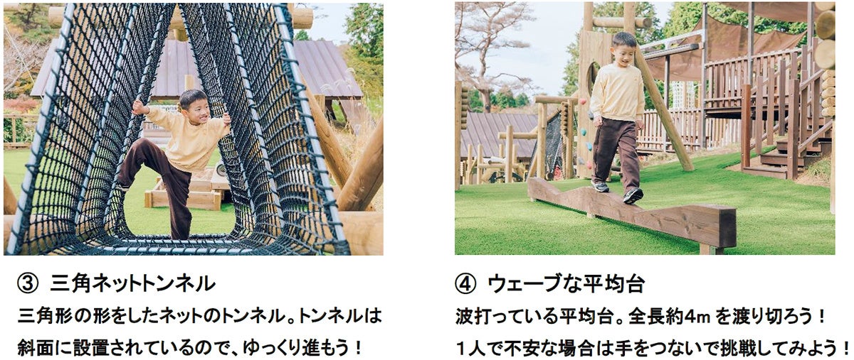 バラエティアスレチックエリア「yahhoy(ヤッホイ)」では、従来の難易度の低い5ポイントを撤去し、新たに難易度を高めた大人まで楽しめる4ポイントを設置してリニューアルします。