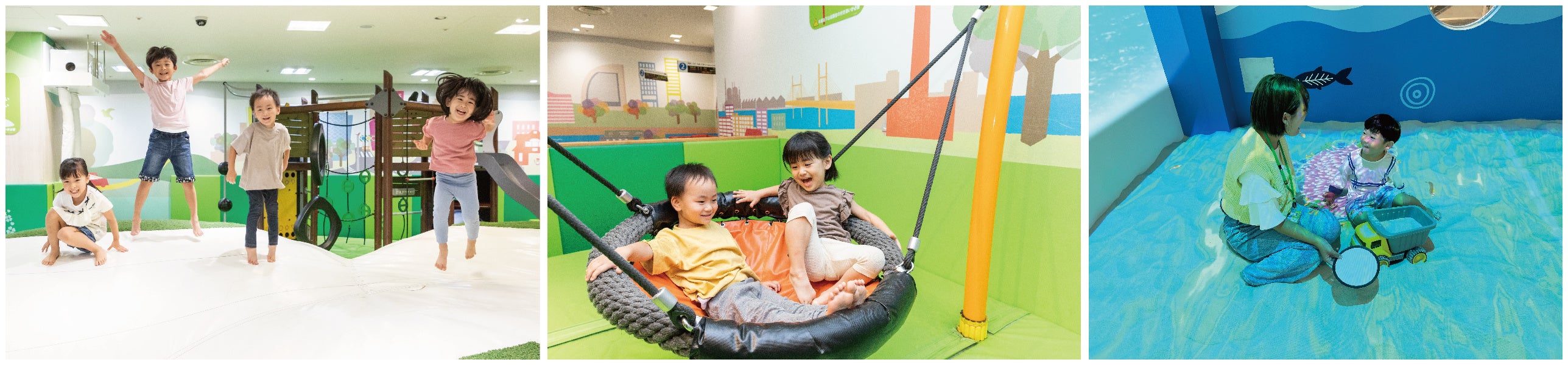 デジタルを利用した、室内で快適に海辺遊びができる「屋内砂浜 海の子」や、子どもの想像力を引き出す玩具・遊具を取りそろえています。また、年齢に応じたゾーニングで、遊びに慣れたスタッフが常駐しているので安心して遊ぶことができます。現在は国内12店舗で展開中です。