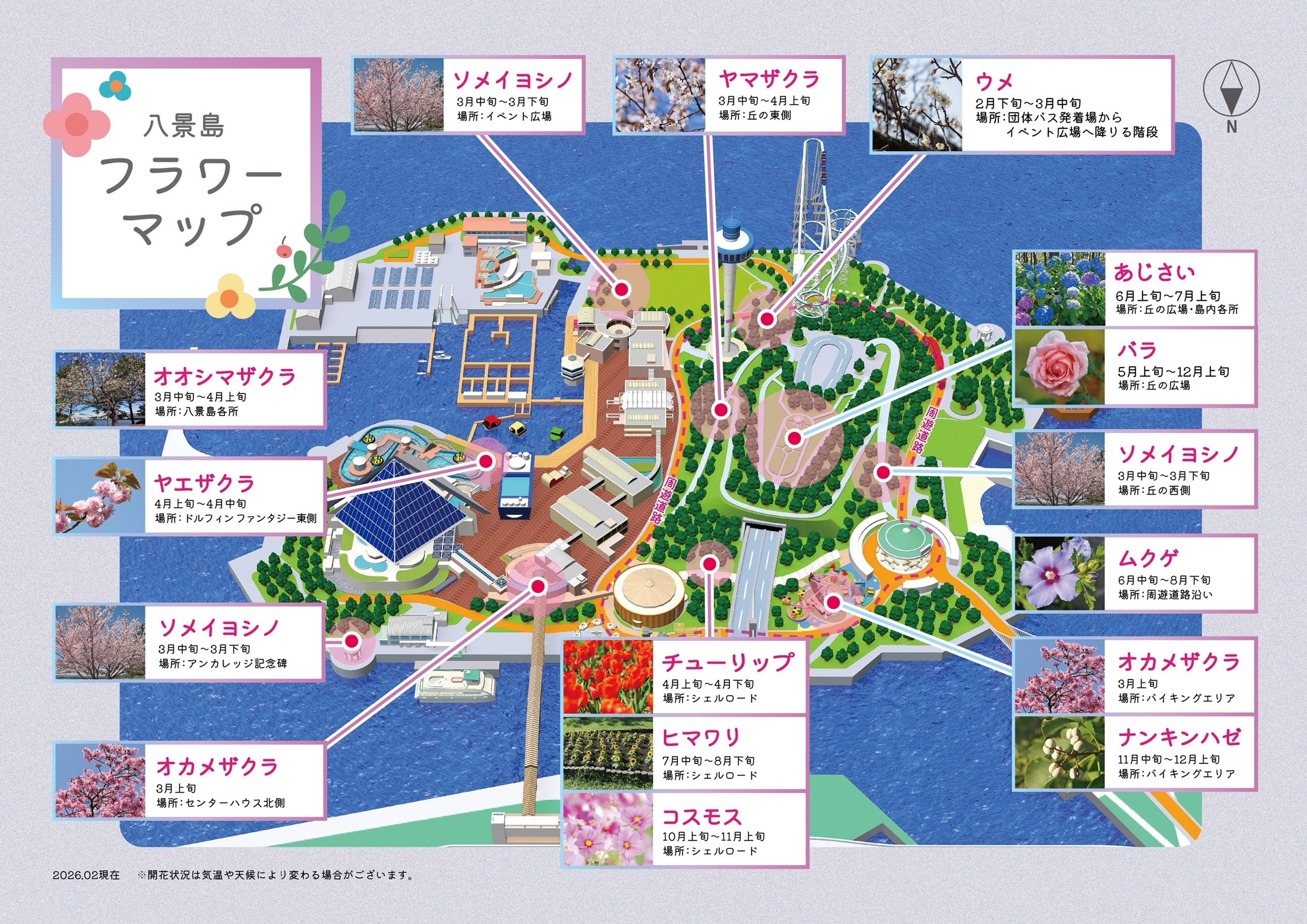 『横浜・八景島シーパラダイス』では、2026年3月2日(月)~4月24日(金)の期間、「生きものたちと花々の競演」をテーマとしたイベント『はなパラ』を開催いたします。八景島では3~4月にソメイヨシノやオオシマザクラなど5種700本の“桜”が、5~6月には約100種500株の“バラ”や、県内最大級の2万株の“あじさい”が咲き誇り、島全体が色彩豊かな花の島となります。