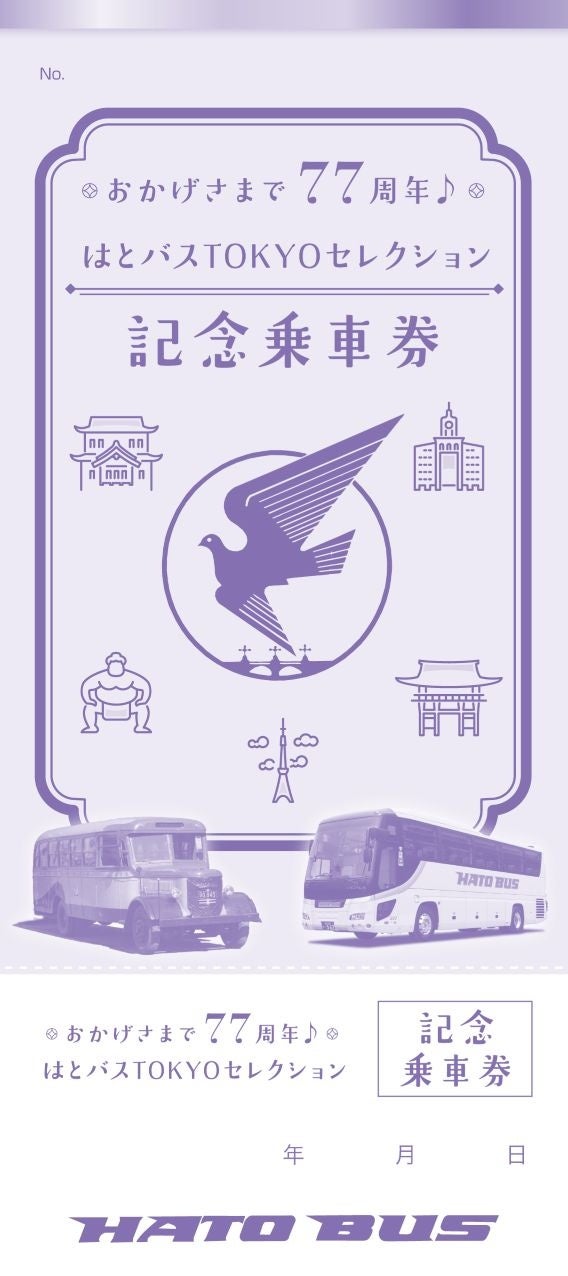 株式会社はとバス(本社:東京都大田区、代表取締役社長:武市 玲子)は、2026年3月19日(木)に定期観光バス運行開始77周年を迎えることを記念し、「おかげさまで77周年♪はとバスTOKYOセレクション」を5日間限定で運行いたします。