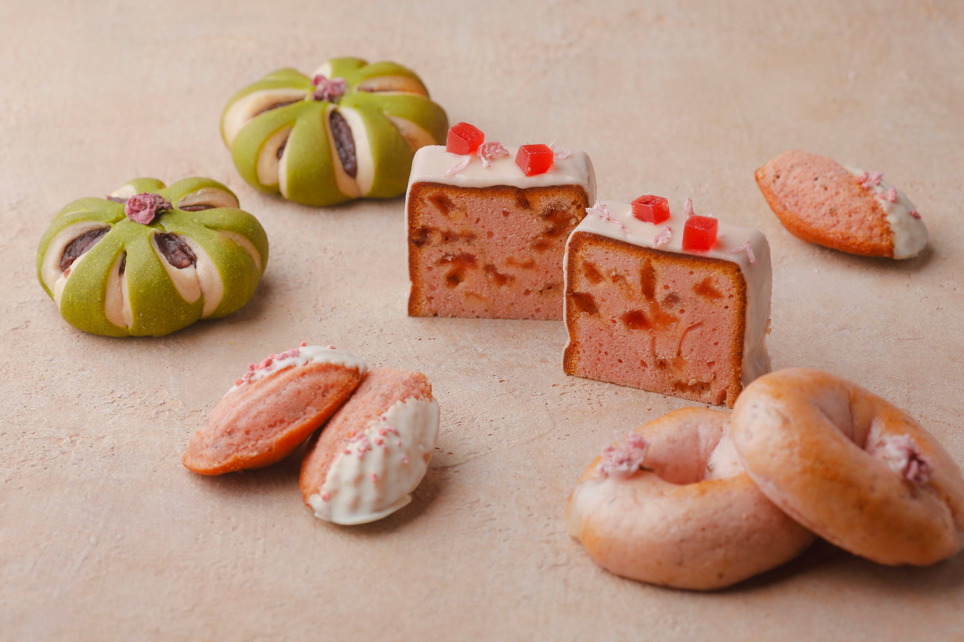 桜のシュークリーム / 桜餅 / 桜と苺のブランマンジェ / 檸檬カードサブレ / 春分の生菓子 / 桜ちらし寿司 / そら豆のファラフェル / 菜の花と桜のムーズ / 桜大根つくねサンド / 白みそスコーン / 抹茶とホワイトチョコのスコーン / 苺桜ジャム / 甘酒クリーム