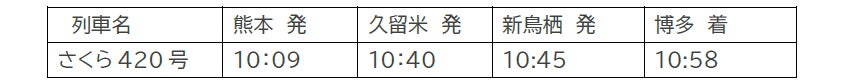※熊本を出発した本臨時列車は、久留米駅に到着後、約10 分間停車いたします。