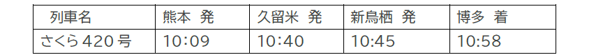 ※熊本を出発した本臨時列車は、久留米駅に到着後、約10 分間停車いたします。