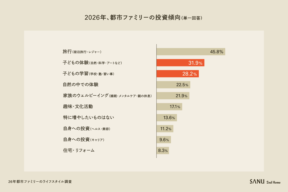 また、投資意欲にも変化が見られました(図2)。教育熱心な都市層においても、塾などの「学習(28.2%)」より、自然・アートなどの「体験(31.9%)」が上回っています。学習よりも好奇心や感性を育む原体験への関心の高さが示唆されます。