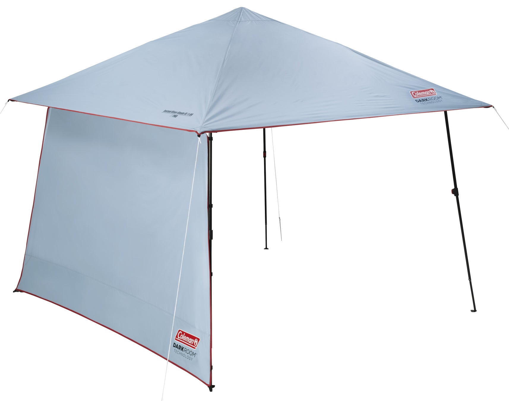 『インスタントバイザーシェードⅣ/L DR』をはじめとする、製品名に「DR」を含むアイテムは、ダークルームテクノロジーを採用しています。「ダークルームテクノロジー」とは、極めて遮光性に優れた生地を使用することで、紫外線(UV)を99.99%以上カットし、日光を90%以上ブロックする、コールマン独自のテクノロジーです。他のシェードよりも日光による影響を除外できるため、夏場でも温度上昇を抑えて快適な空間を創出します。