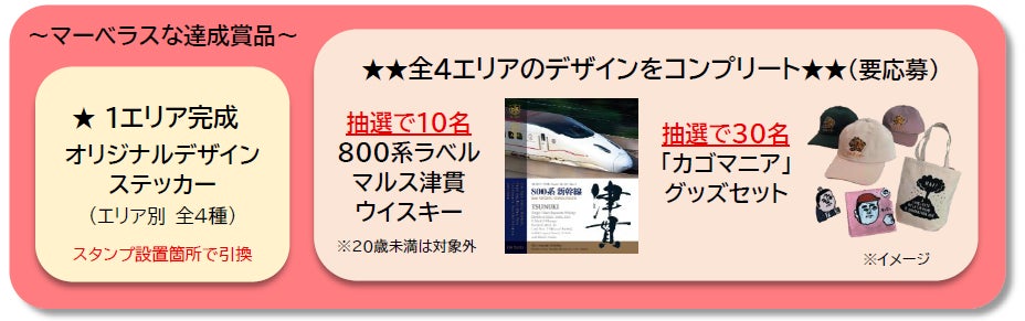 キャンペーン期間中に鹿児島県内を周遊しながら楽しめる「重ね押しスタンプラリー」を開催します!エリア毎に設置された4つのスタンプを重ね押しすると各エリアならではのオリジナルデザインが完成。エリアごとに異なる全4種類のデザインを集めてマーベラスな賞品をGETしよう!