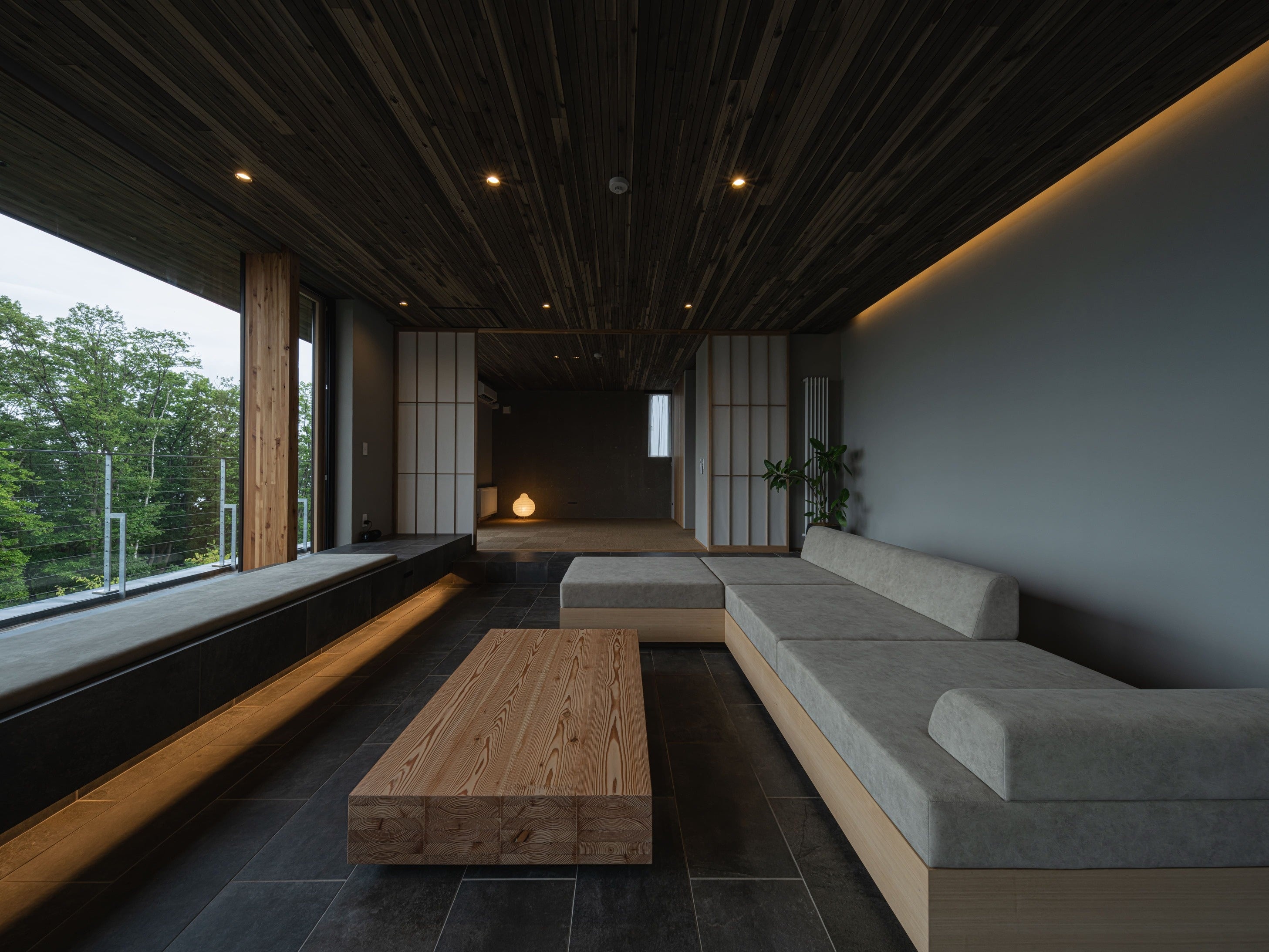 『暮らすように泊まる』をテーマとするヴィラ5棟をはじめ、地域の食や文化を発信する商業棟・ショップ、書道家のギャラリー、訪問者が思い思いに過ごせる東屋・デッキがあり、全ての建築に道産カラマツ・ナラ・タモ・道南スギなど、北海道で育った木材をふんだんに使用。道産木材の他にも札幌軟石など地域の素材を用い、春香の自然景観に静かに溶け込む建築を実現しています。