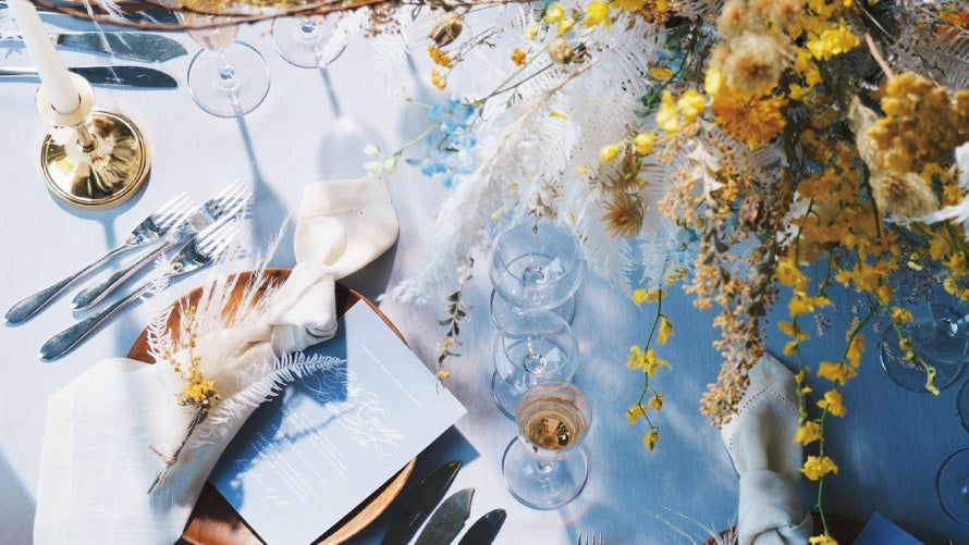 本フェアではミモザの花で装飾したウェルカムアイテムのコーディネイト展示に加え、2026年4月にスタートする新プリフィックスメニューより、シェフこだわりのメイン料理2品の食べ比べと、ホテルパティシエ特製デザートの無料試食をご用意。映像演出「エンドロールムービー」の上映体験も実施し、春ならではのあたたかな空間の中で、結婚式当日の一日をゆっくりと思い描ける季節限定のフェアです。