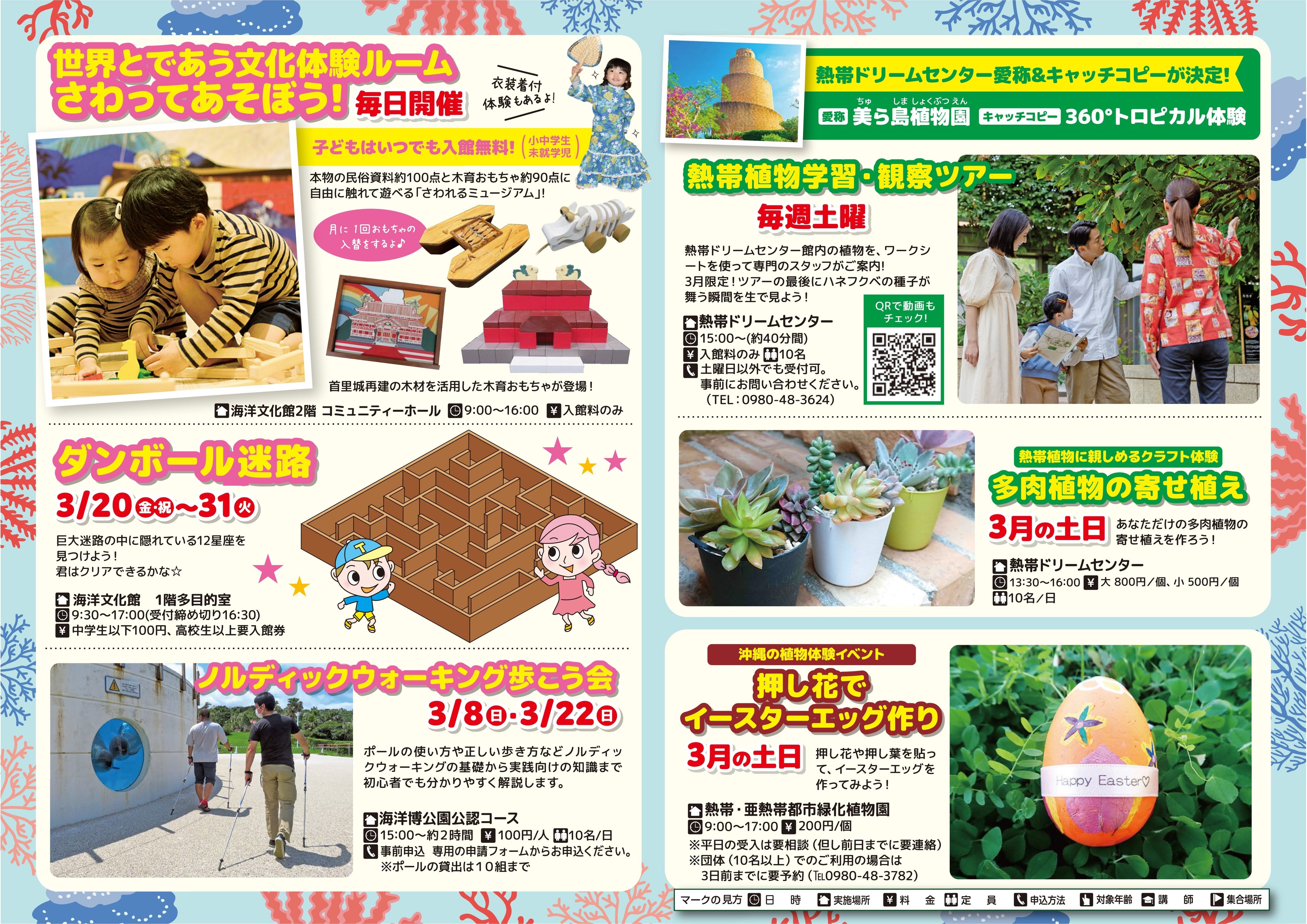 そのほか、多肉植物の寄せ植えやウミガメ飼育体験など、楽しいイベントが盛りだくさん!