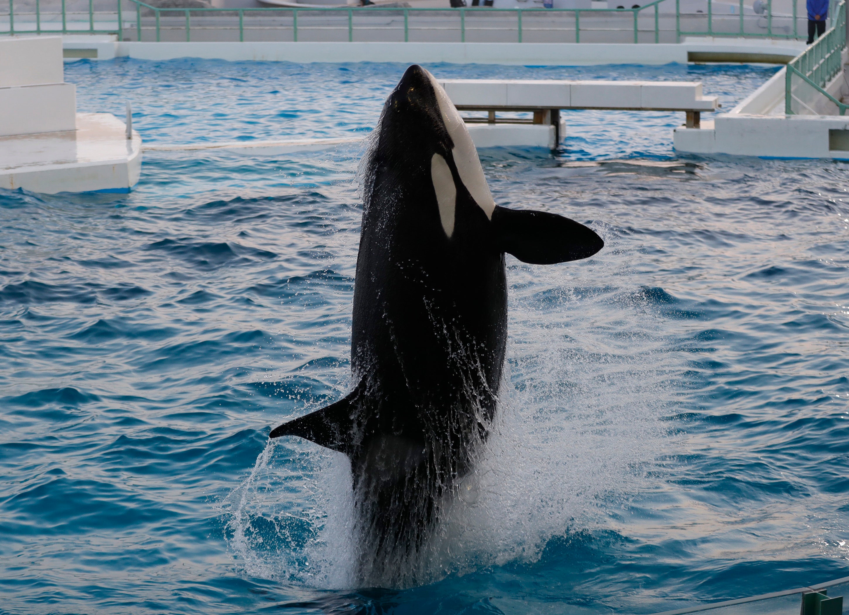 トレーニングの解説後に観覧する夕方の限定シャチパフォーマンスです。