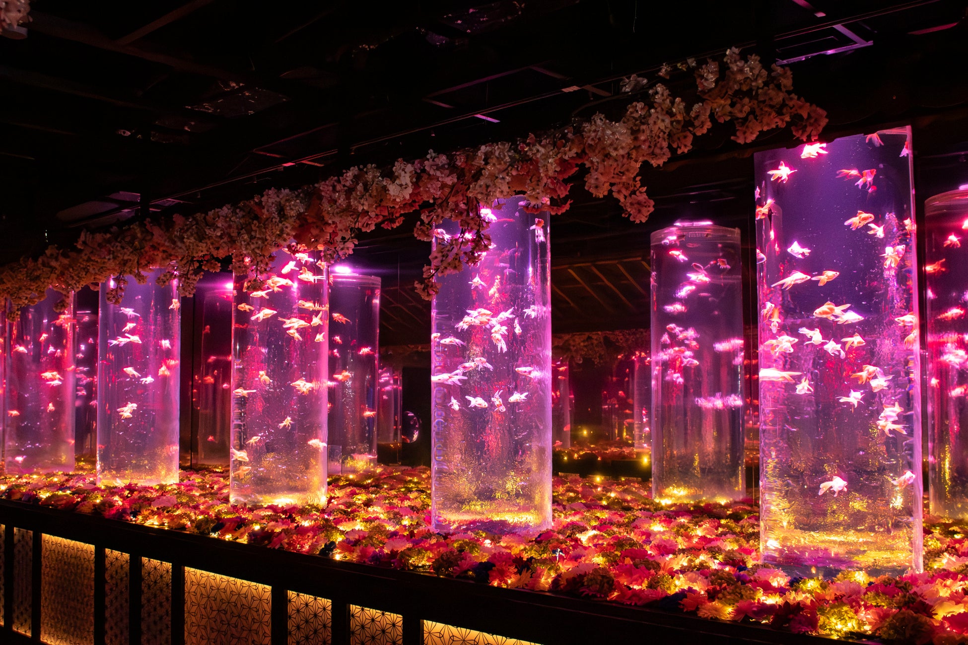 毎年恒例の春企画展として開催される本展示では、桜色に包まれた幻想的な空間の中を金魚が優雅に泳ぐ姿で、春の訪れを五感で感じさせます。アートアクアリウムならではの“喧騒忘れる、春景色”をお楽しみください。