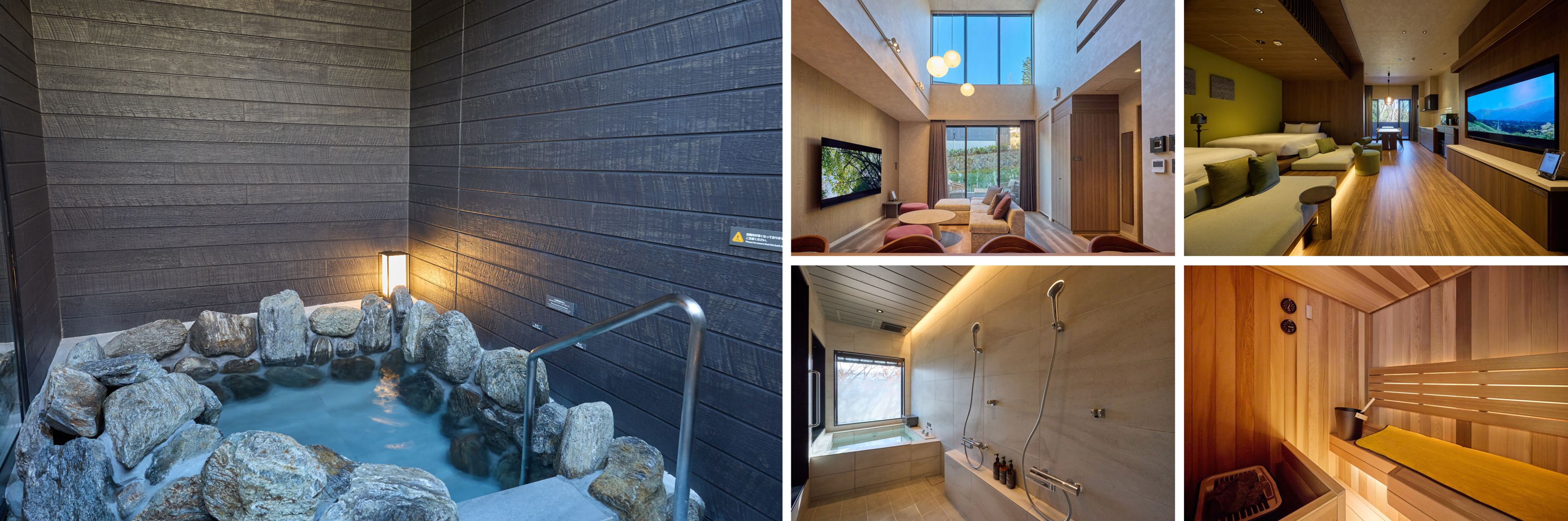 – 自家源泉のお風呂やサウナ、開放的なテラスなど、客室専用の設備が充実 –