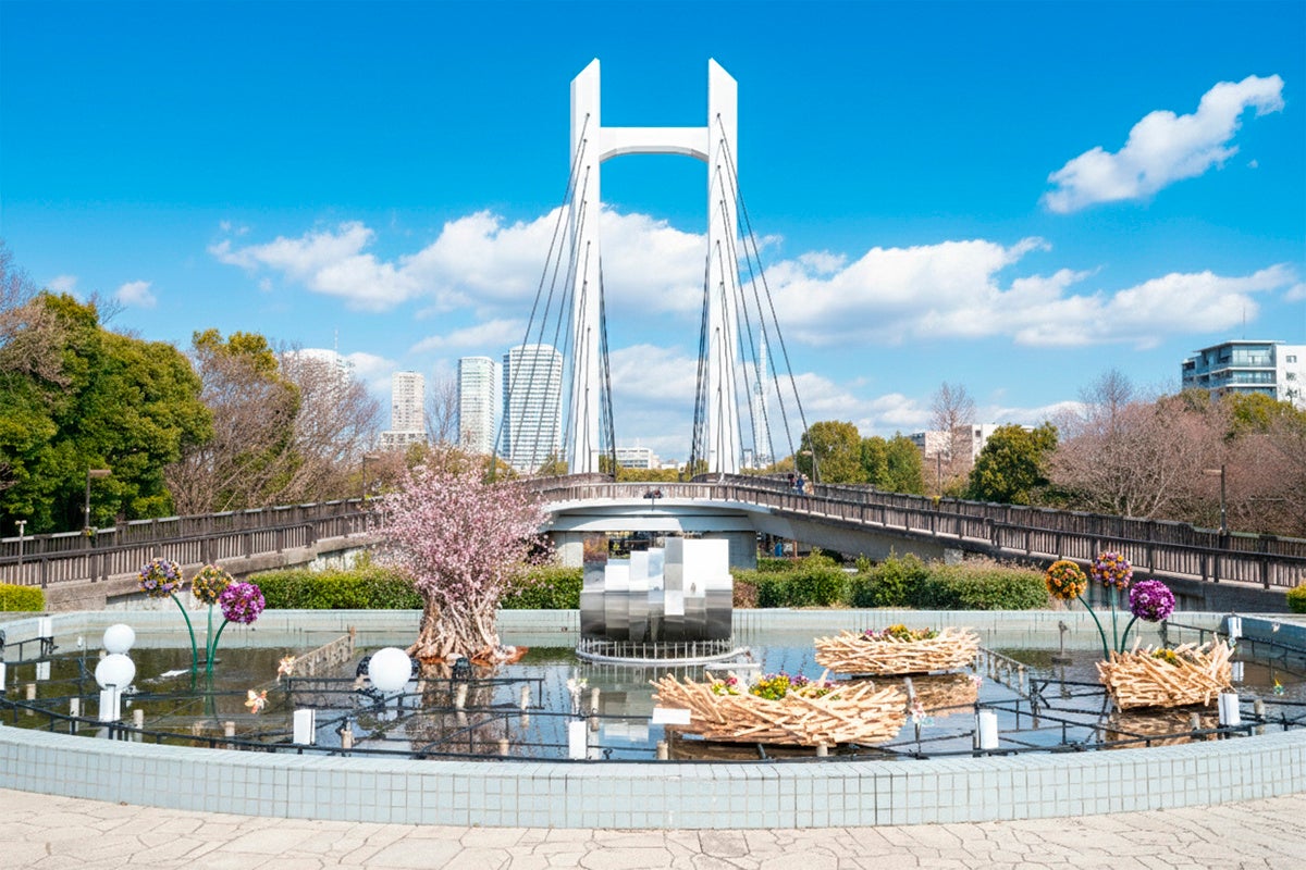 材木業の歴史と水辺の自然が調和する「木場公園」。この早春、園内全体を水路に見立て、水路を渡る風と、かつて夜の水路を照らした常夜灯の灯をメインモチーフに、幻想的な花の装飾と灯りによって、木場の歴史情緒を表現します。日中は陽光と水面のきらめきが、日没後は夜灯を彷彿とさせる光のゆらぎが、まるで刻を超えた別世界のような情景をつくり出し、訪れる人々を歴史あふれる特別な空間へと誘います。木場公園だからこそ実感できる、川の流れと風に想いを馳せる早春の輝きを、ぜひご体験ください。開催期間中は、園内の5カ所を巡るスタンプラリー、キッチンカーの出店もあります。花と光で溢れる早春の木場公園を、どうぞ心行くまでお楽しみください。